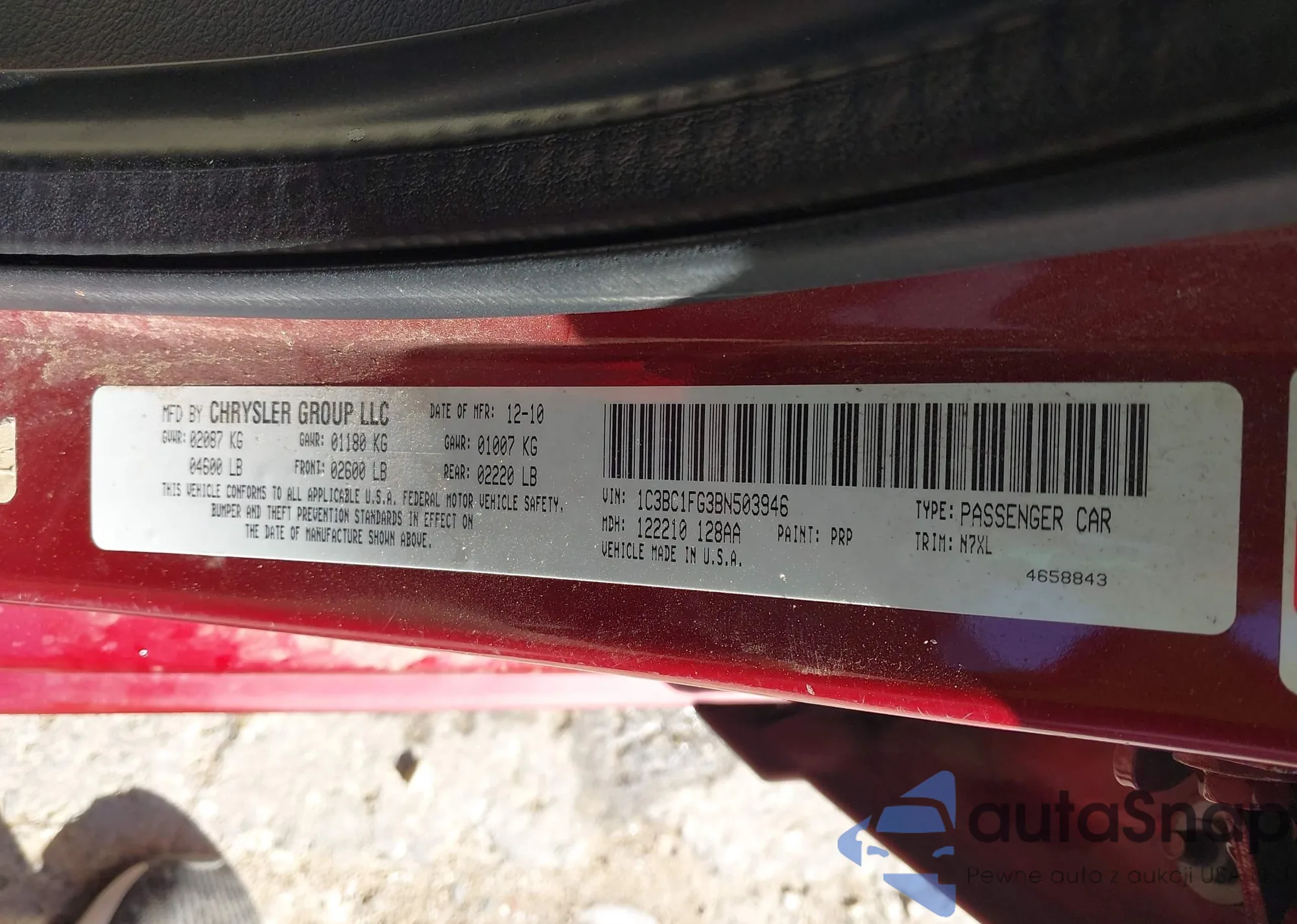 • VIN 1C3BC1FG3BN503946