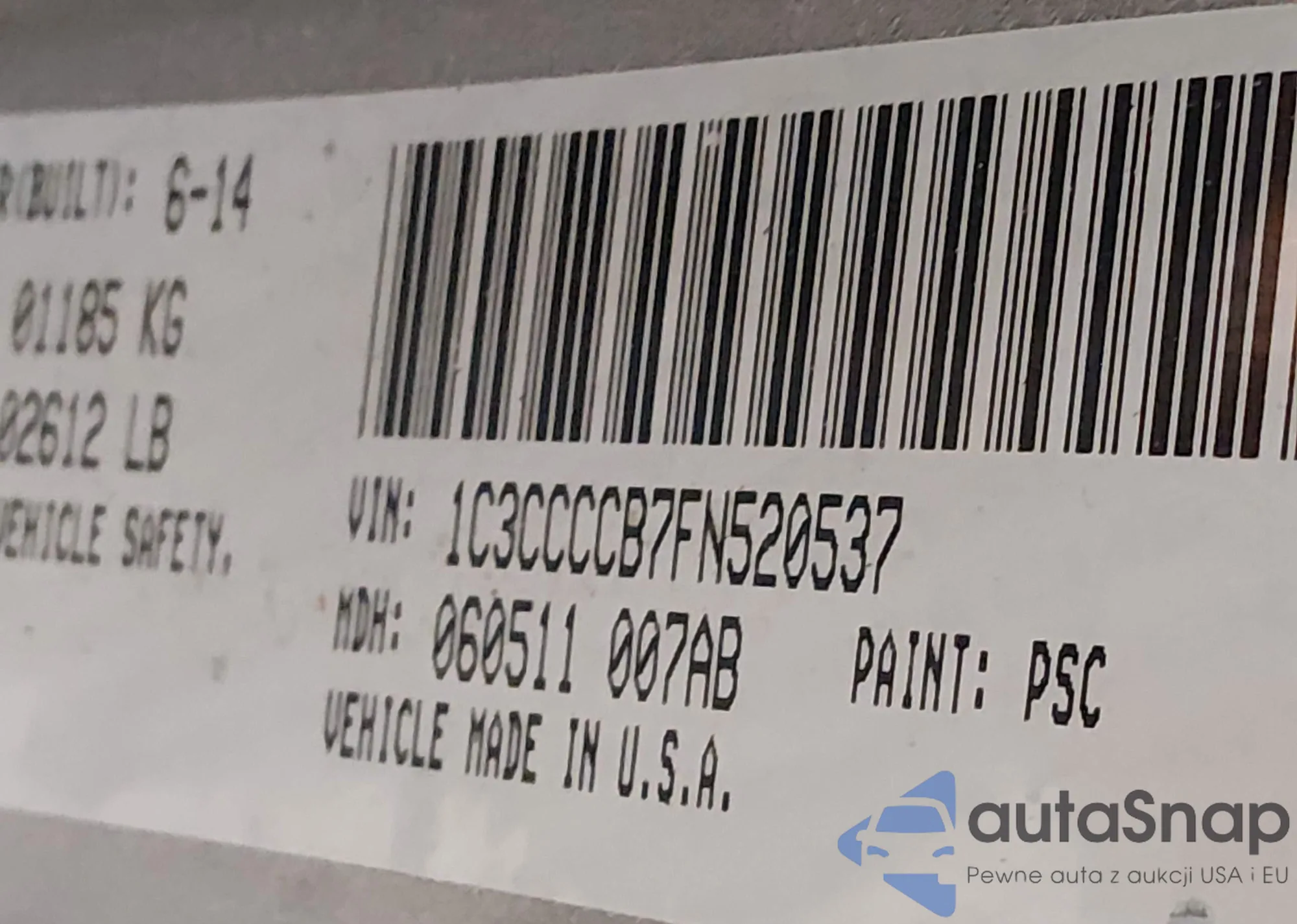 • VIN 1C3CCCCB7FN520537