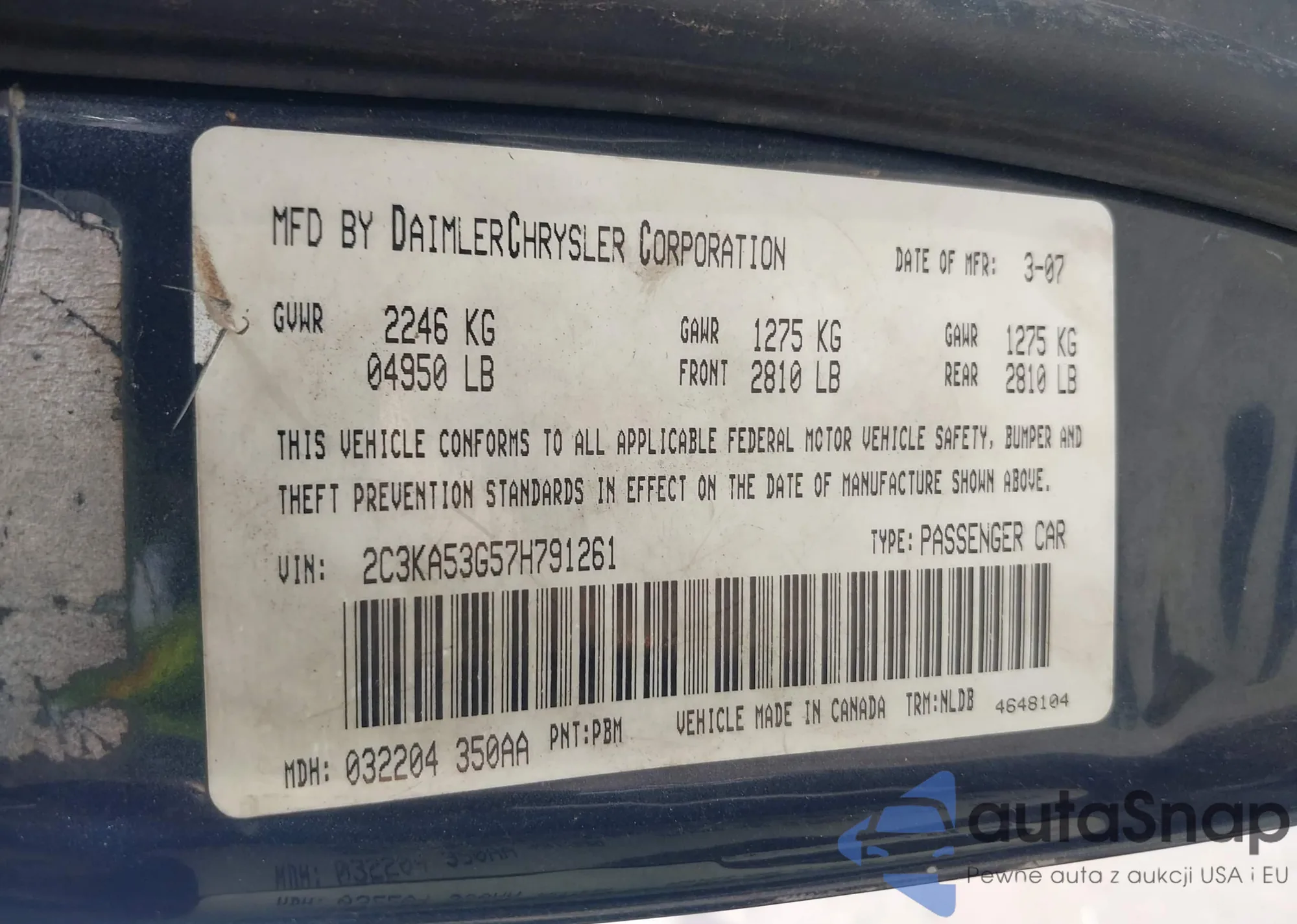 LOT: 43209653 VIN: 2C3KA53G57H791261