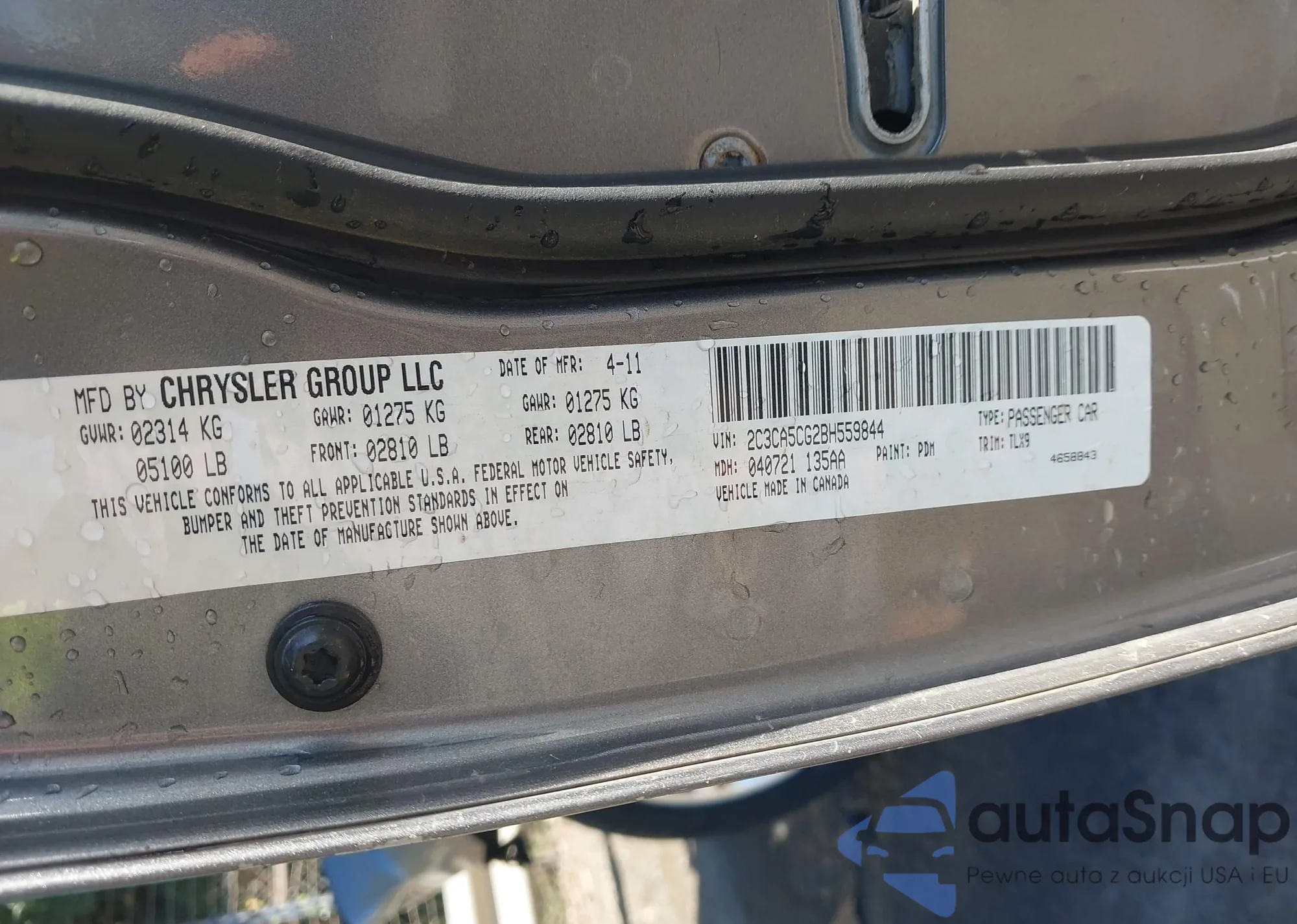 • VIN 2C3CA5CG2BH559844