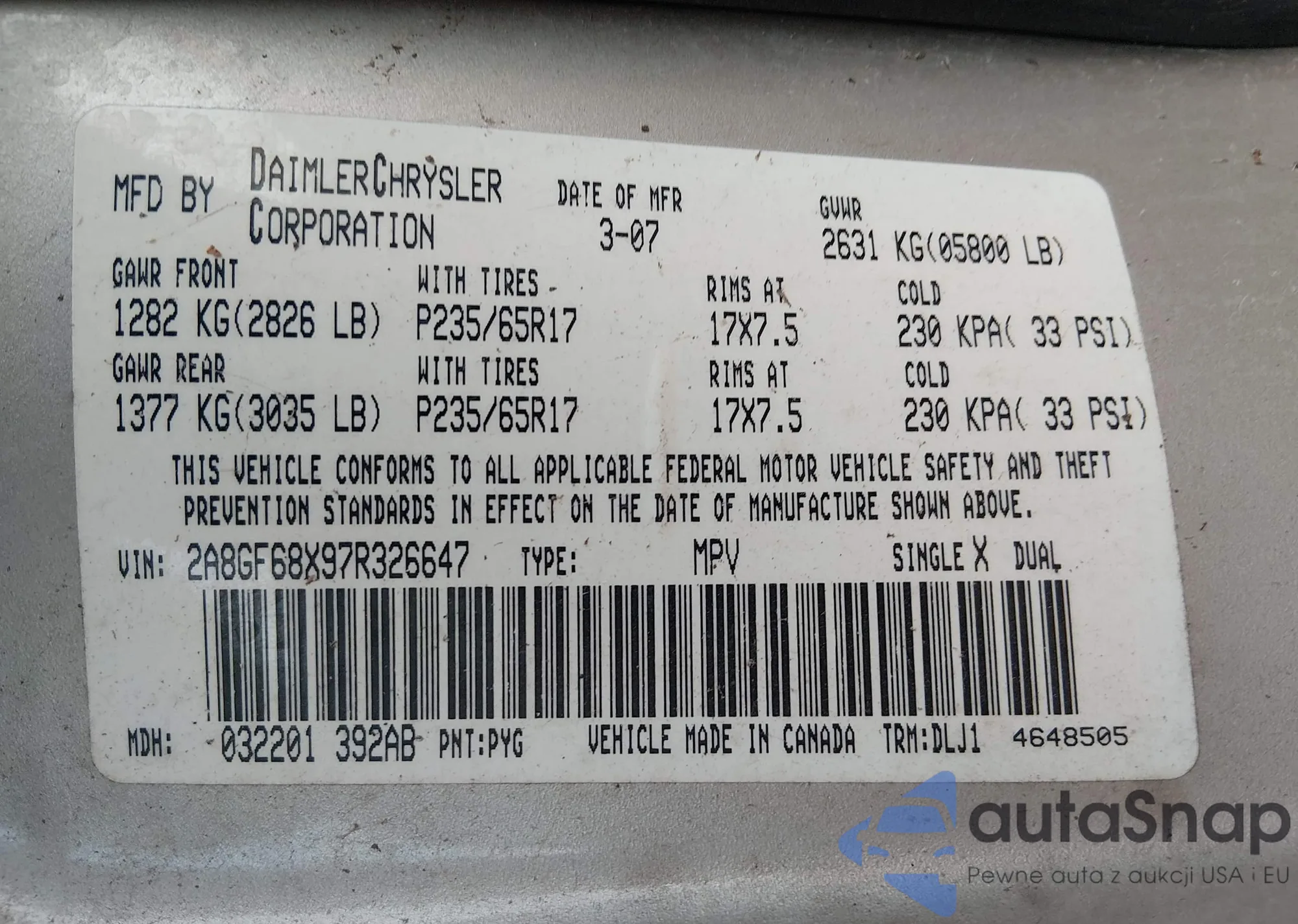 • VIN 2A8GF68X97R326647