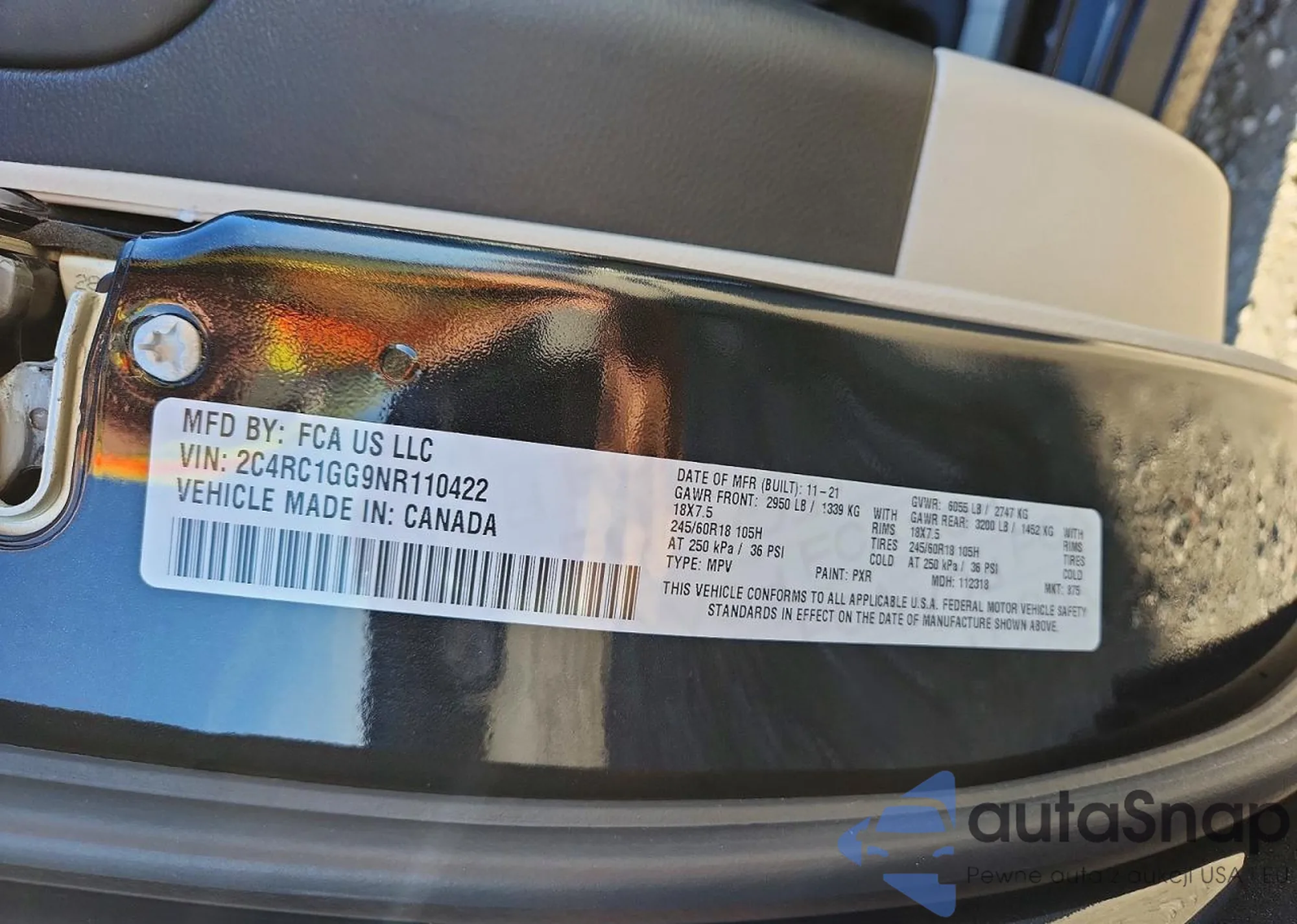 • VIN 2C4RC1GG9NR110422