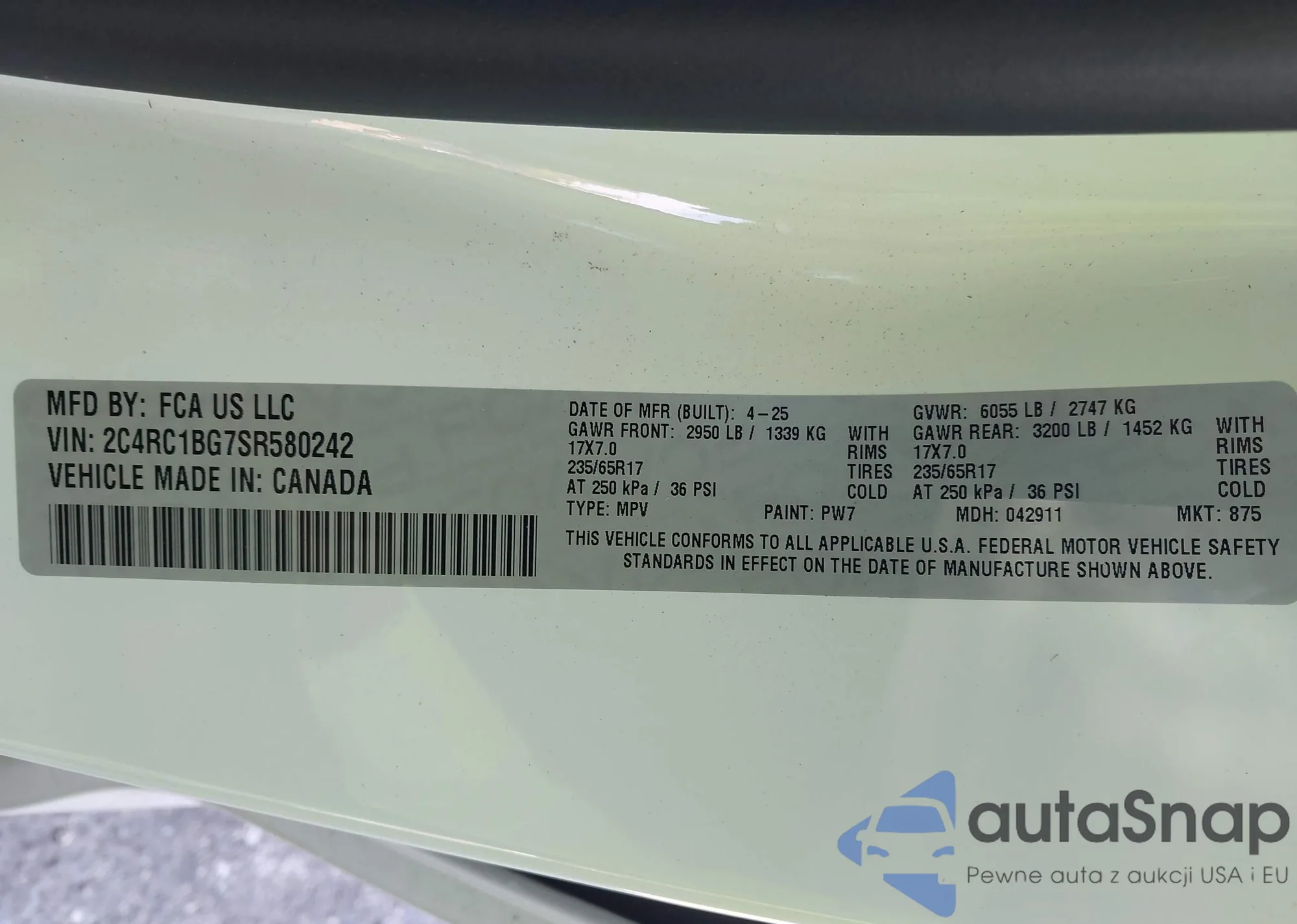 • VIN 2C4RC1BG7SR580242