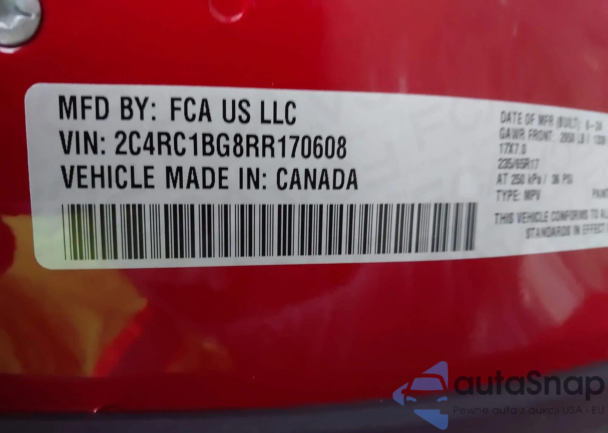 • VIN 2C4RC1BG8RR170608