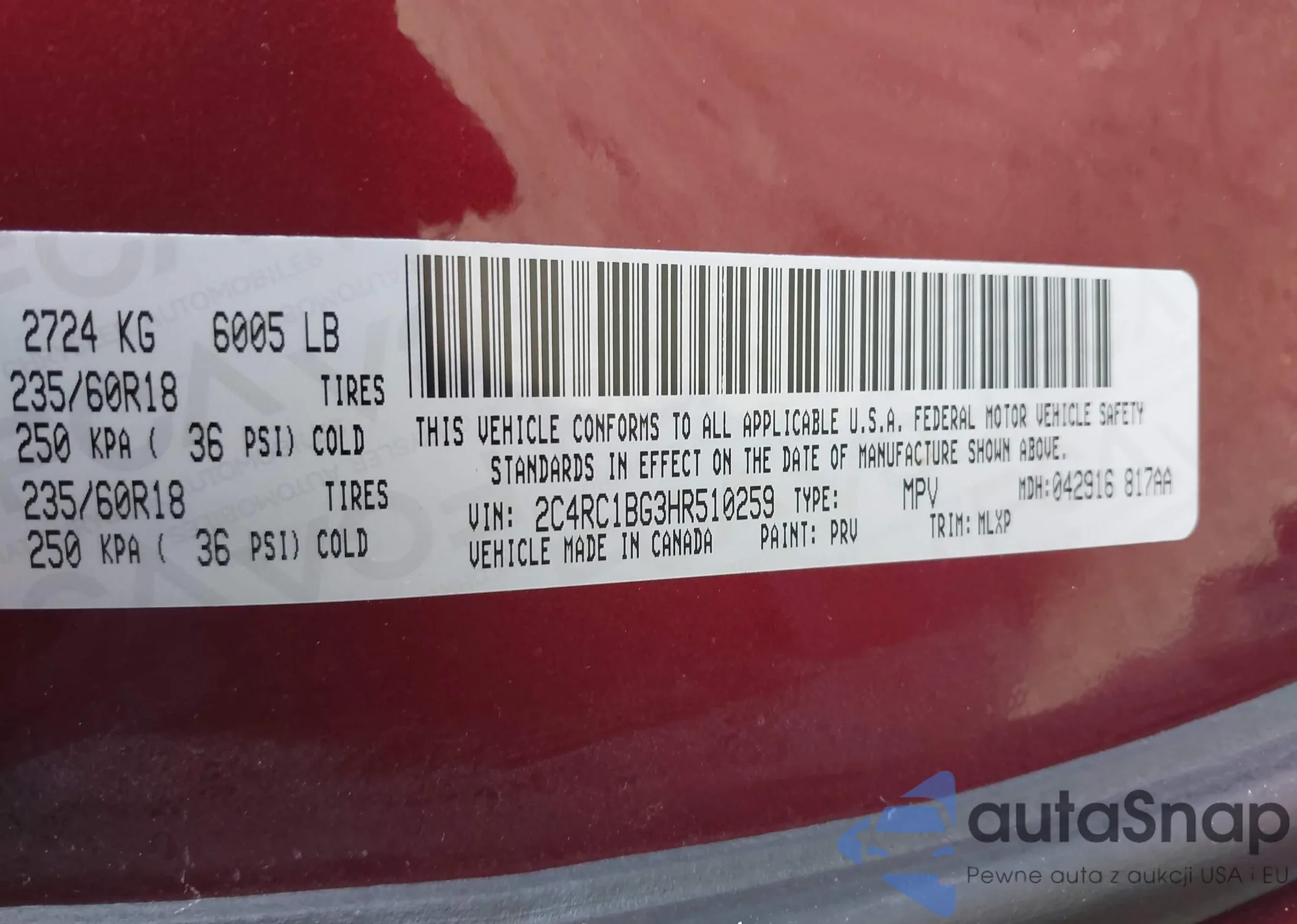 • VIN 2C4RC1DG0HR771006