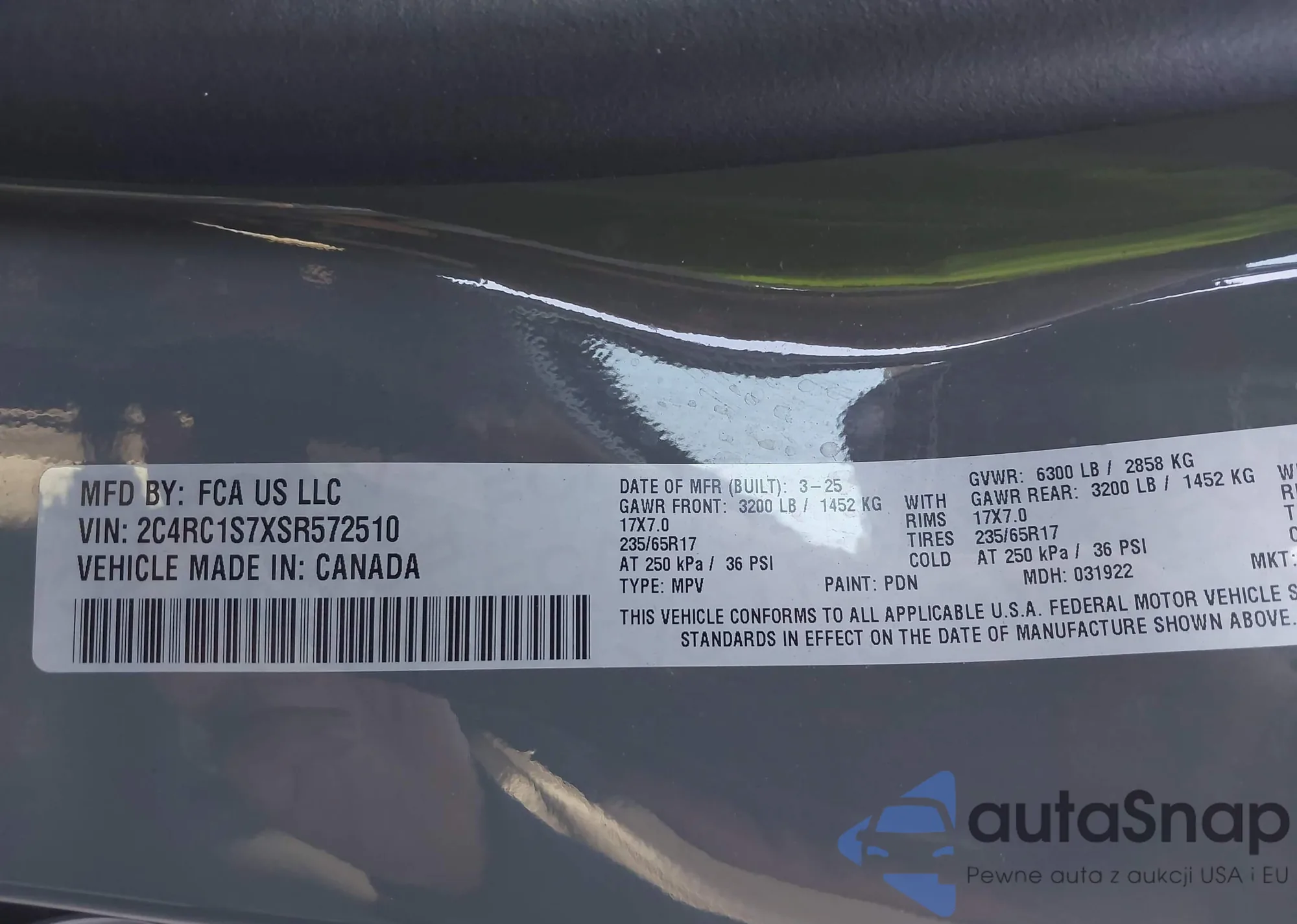 • VIN 2C4RC1S7XSR572510