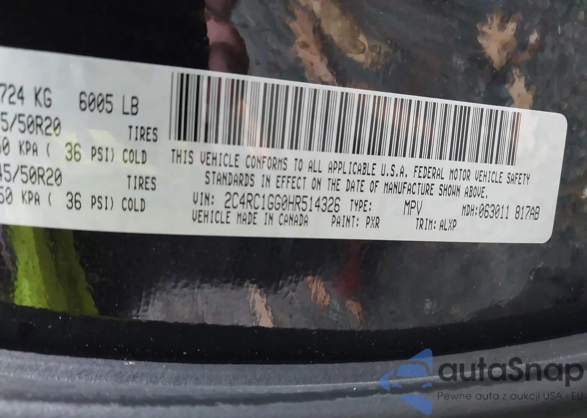 • VIN 2C4RC1GG0HR514326