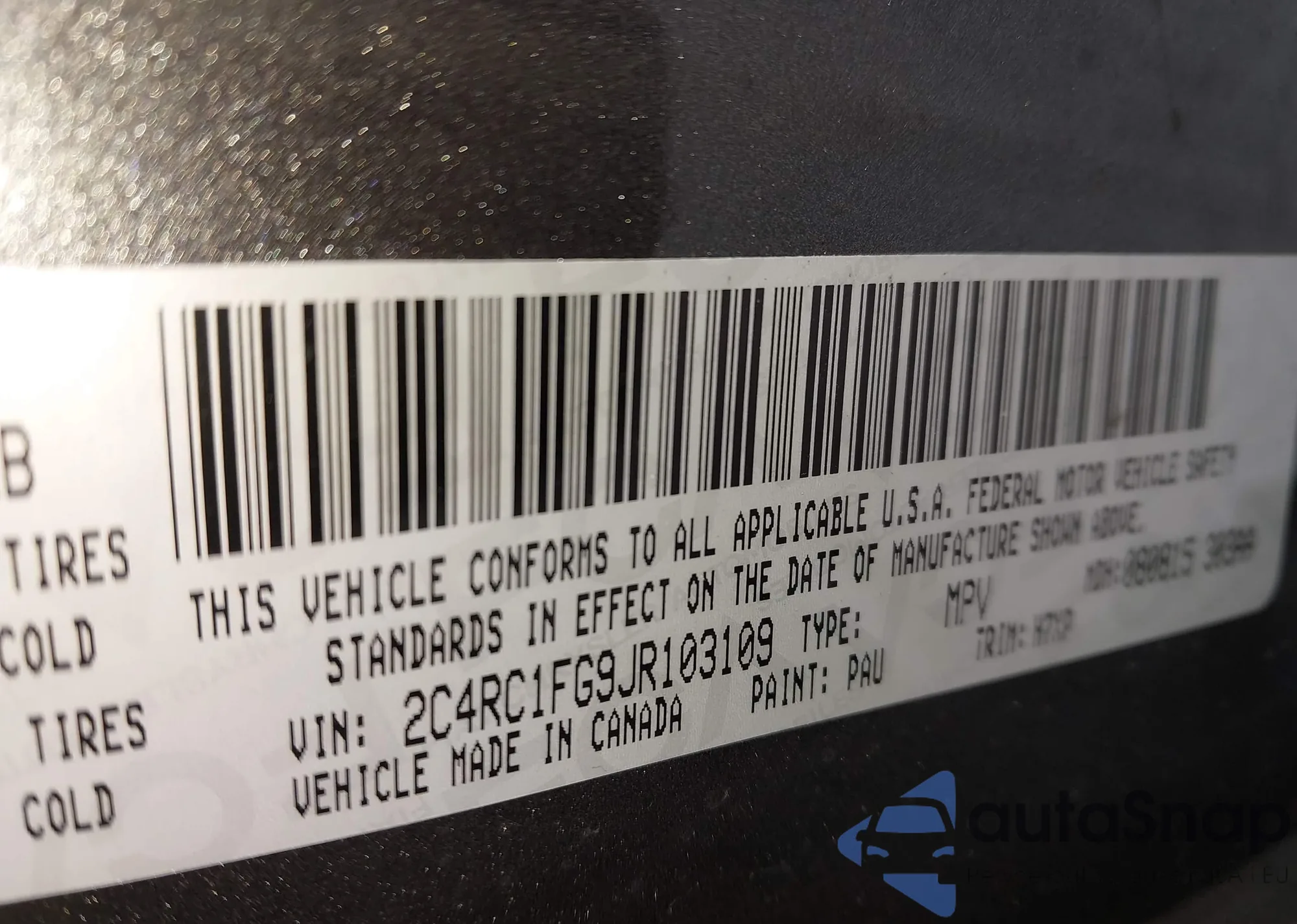 • VIN 2C4RC1FG9JR103109