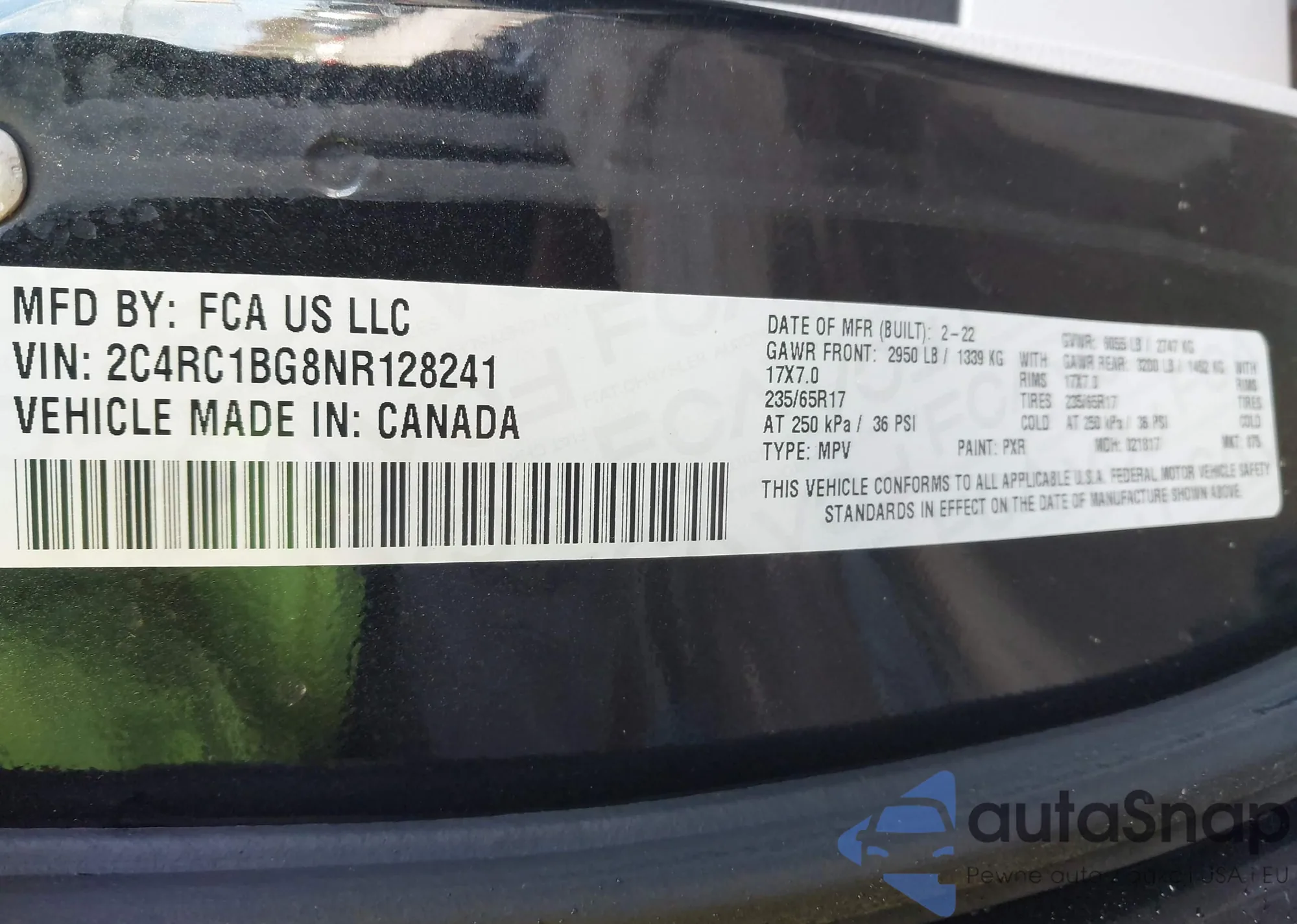 • VIN 2C4RC1BG8NR128241