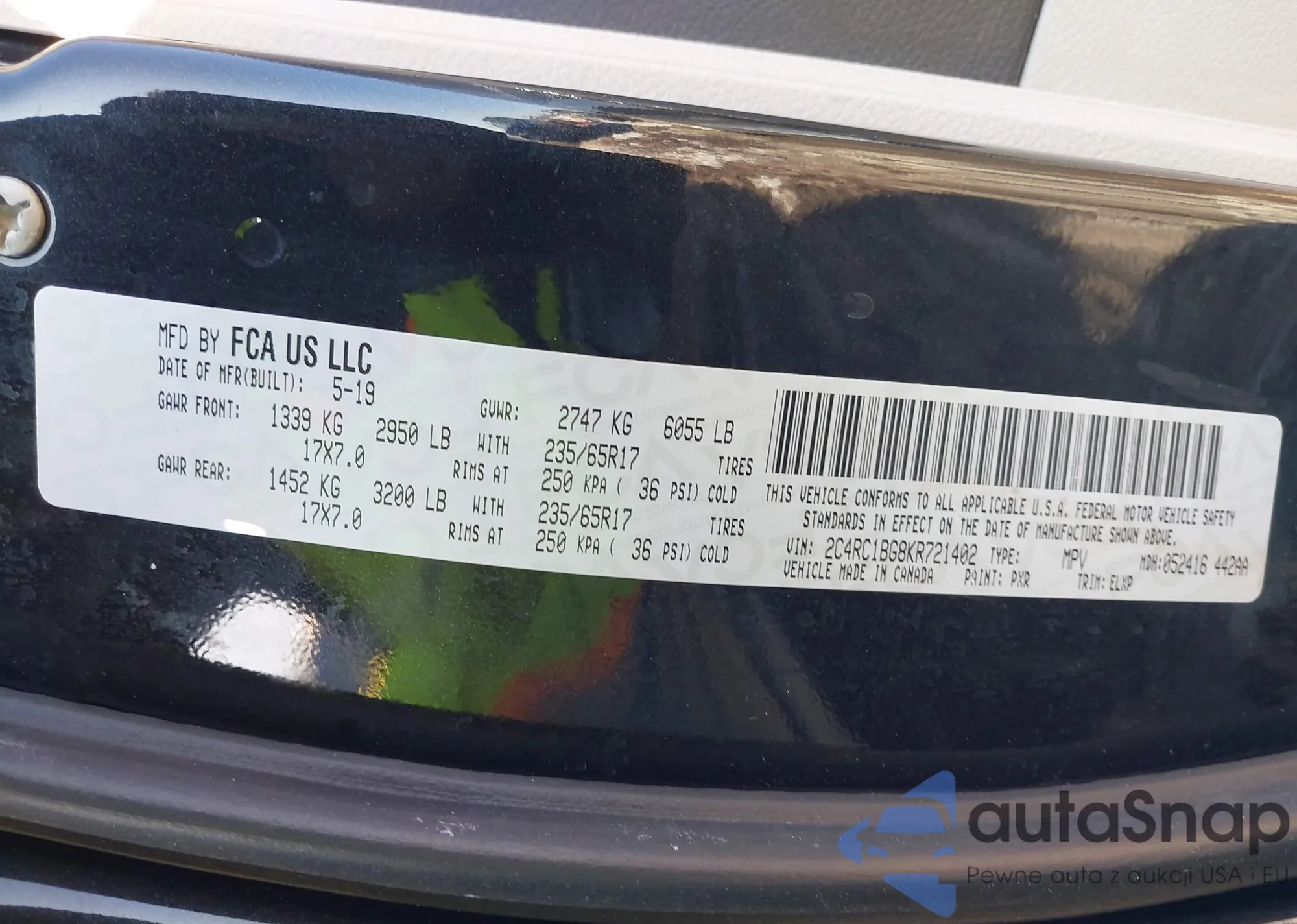 • VIN 2C4RC1BG8KR721402
