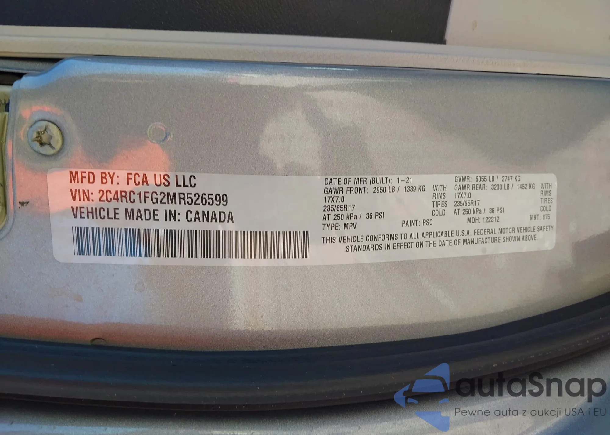 • VIN 2C4RC1FG2MR526599