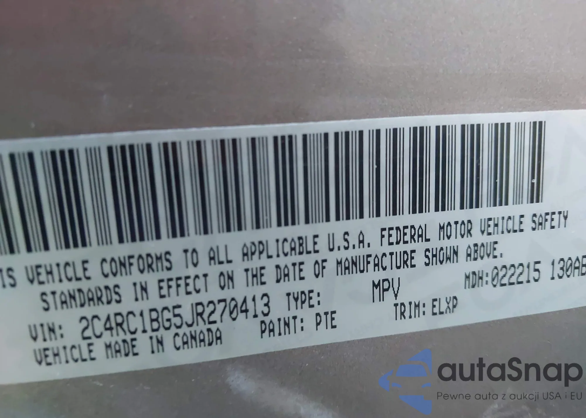 • VIN 2C4RC1BG5JR270413