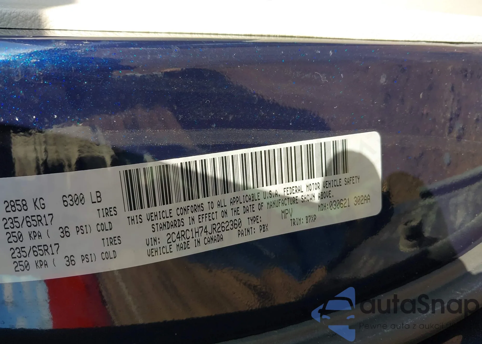 • VIN 2C4RC1BG8JR280305