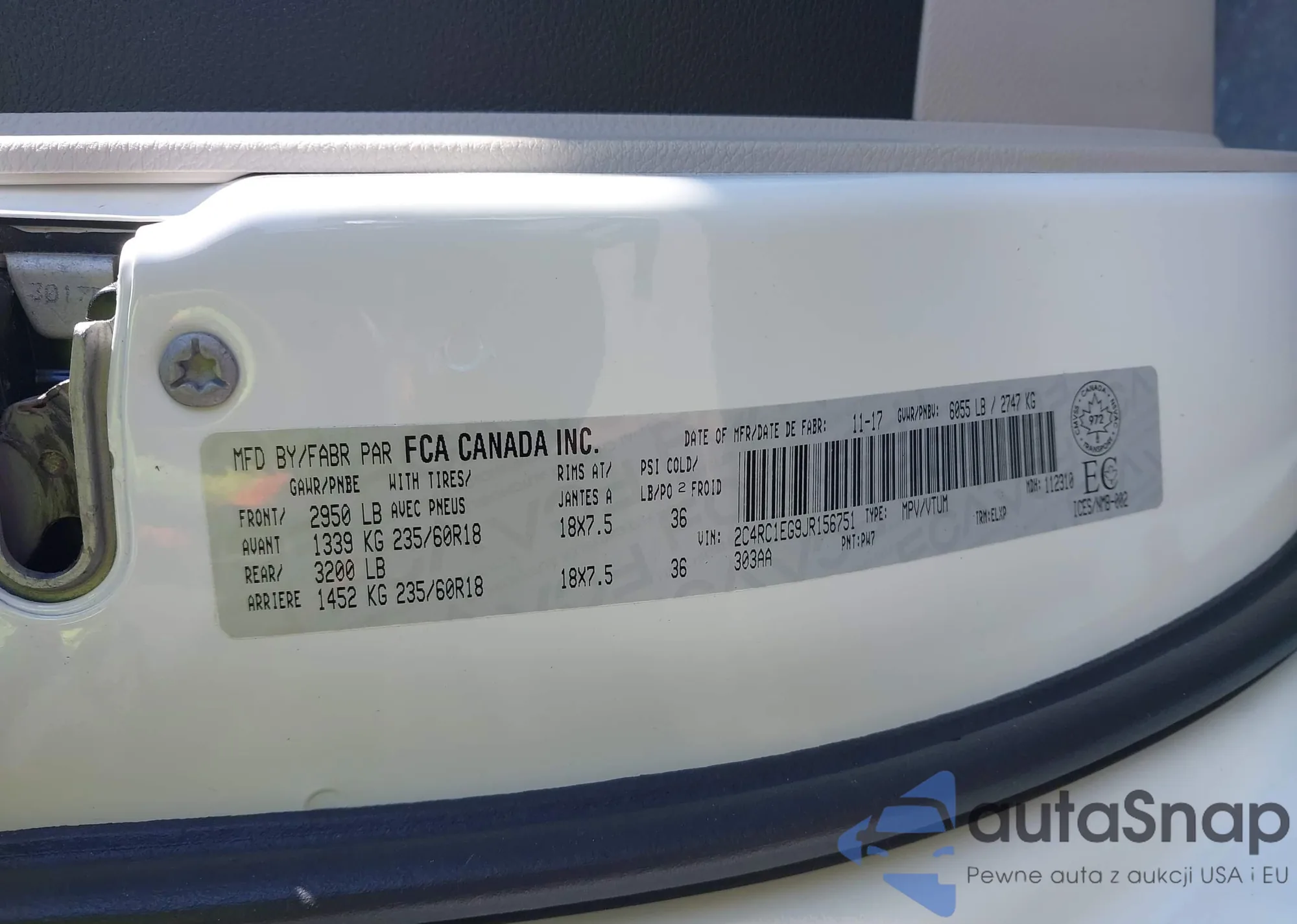• VIN 2C4RC1EG9JR156751