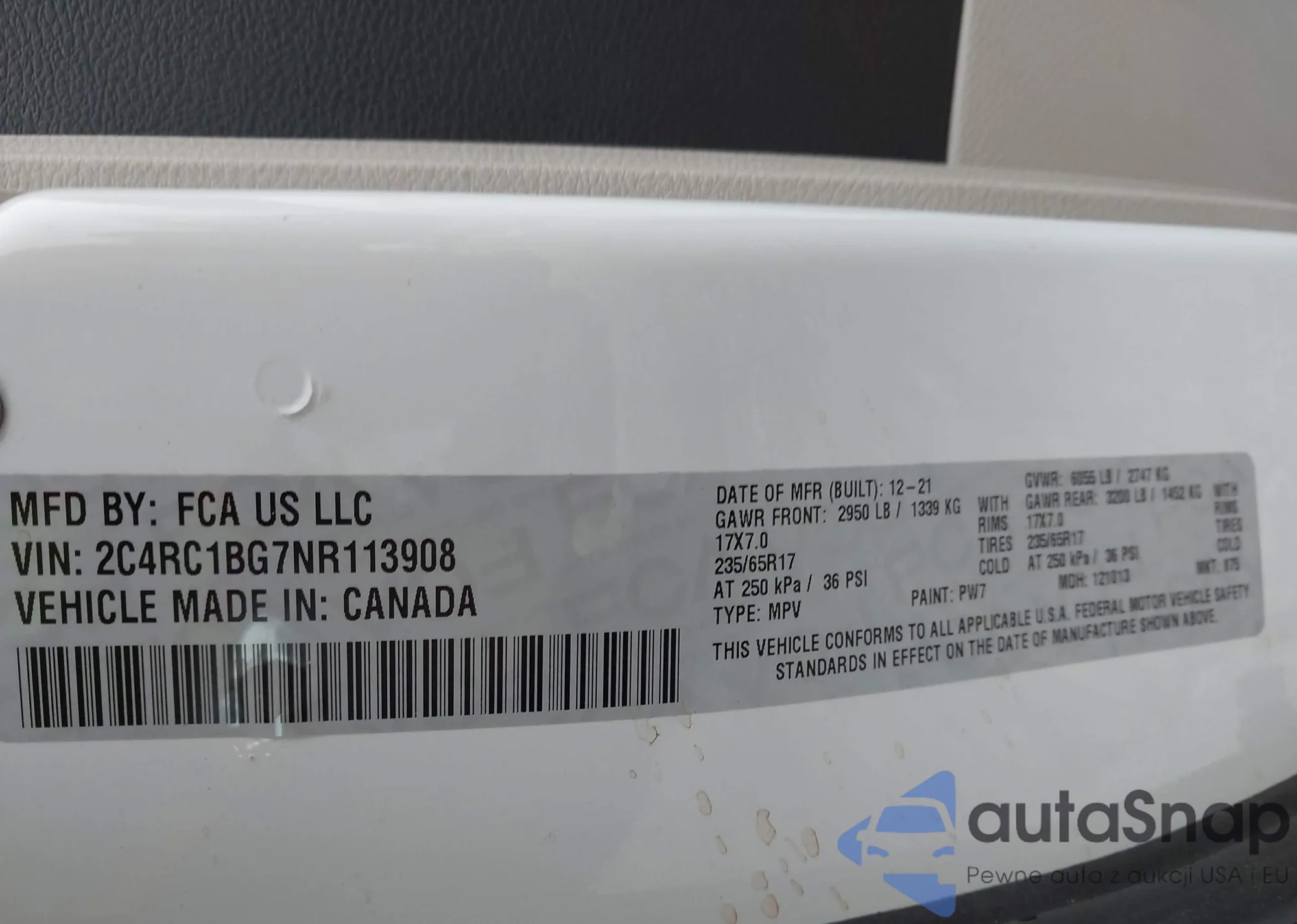 • VIN 2C4RC1BG7NR113908