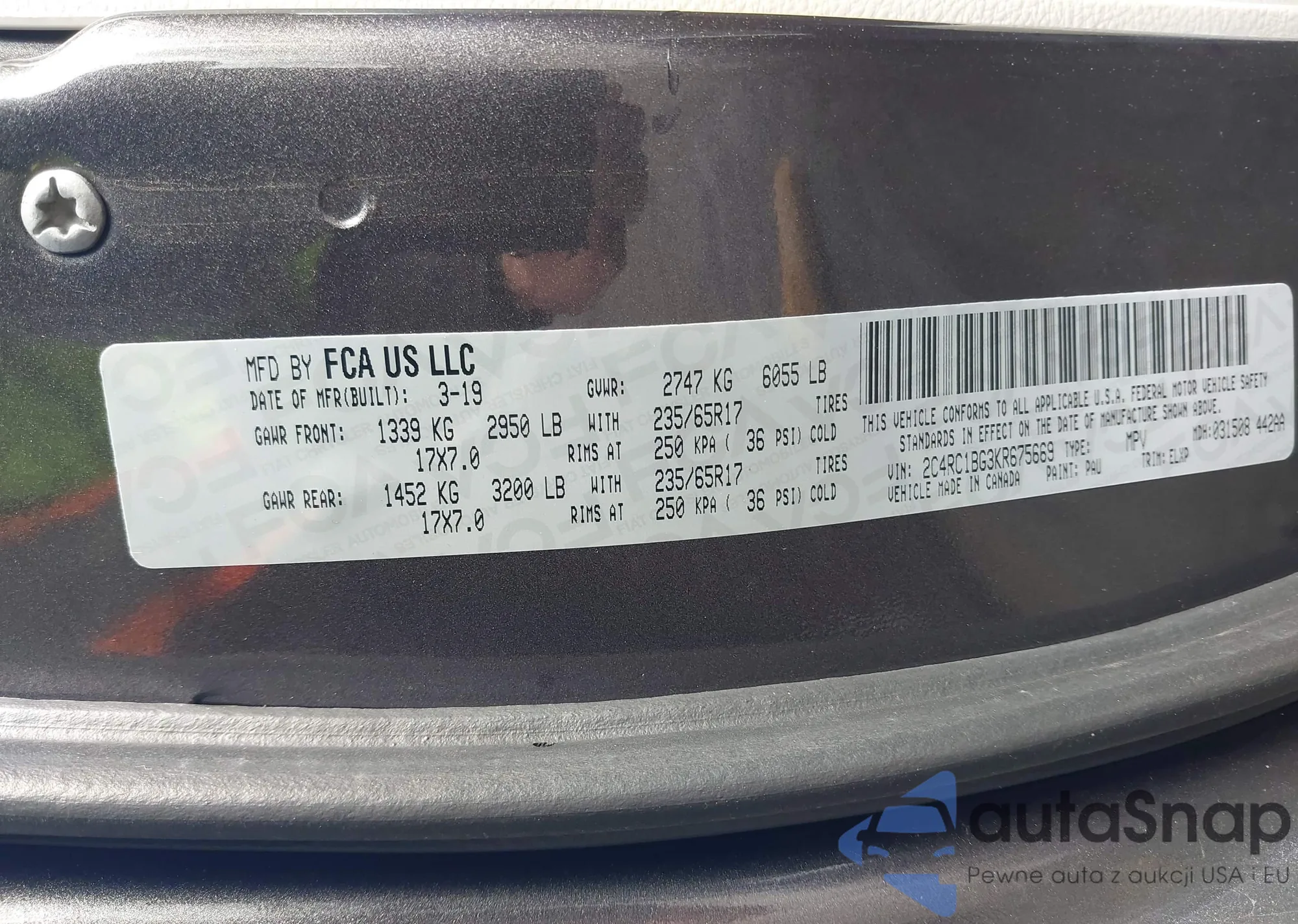 • VIN 2C4RC1BG3KR675669