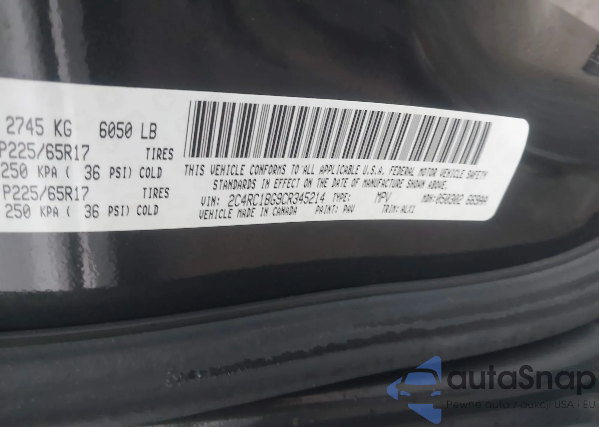 • VIN 2C4RC1BG9CR345214