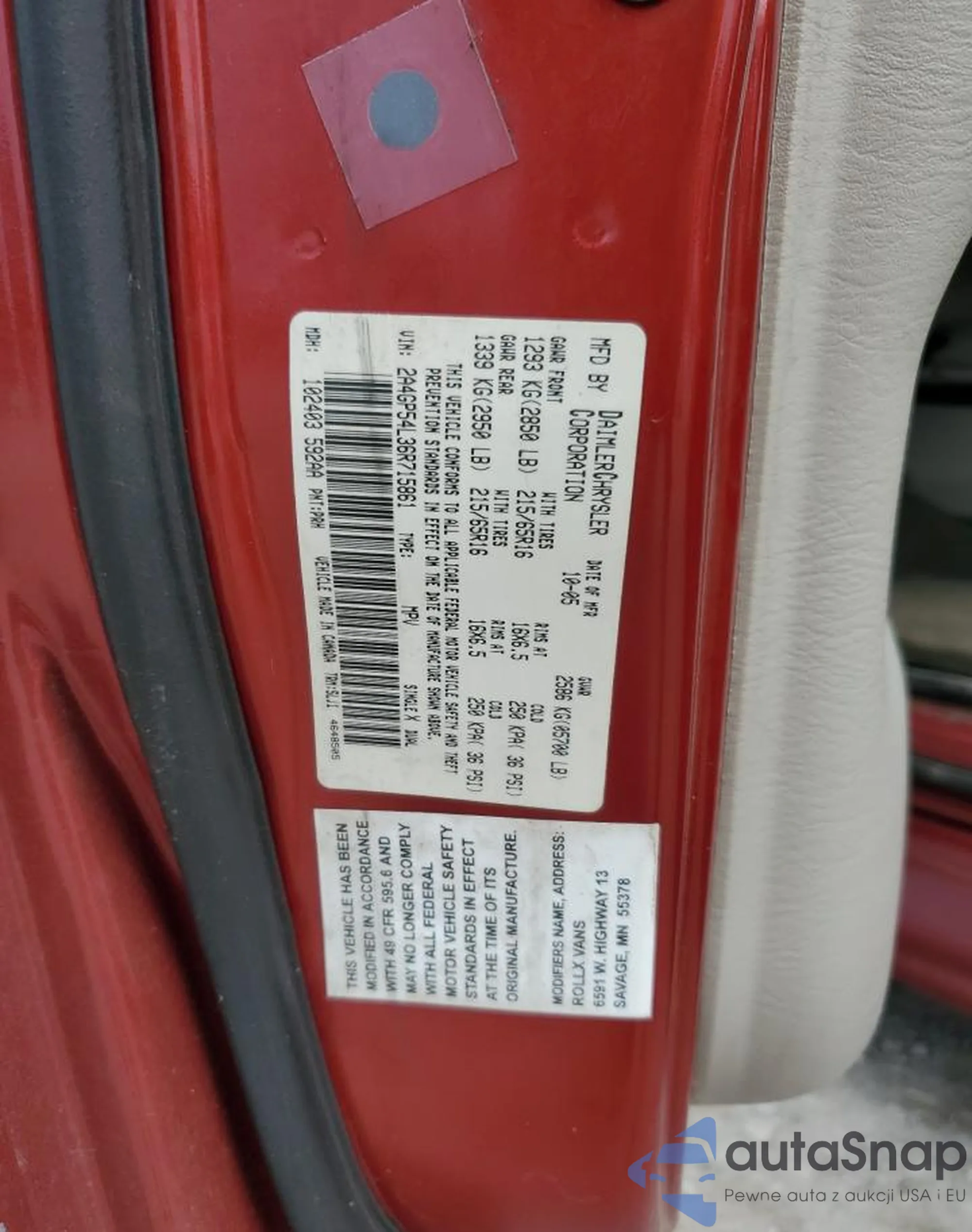 • VIN 2A4GP54L36R715861
