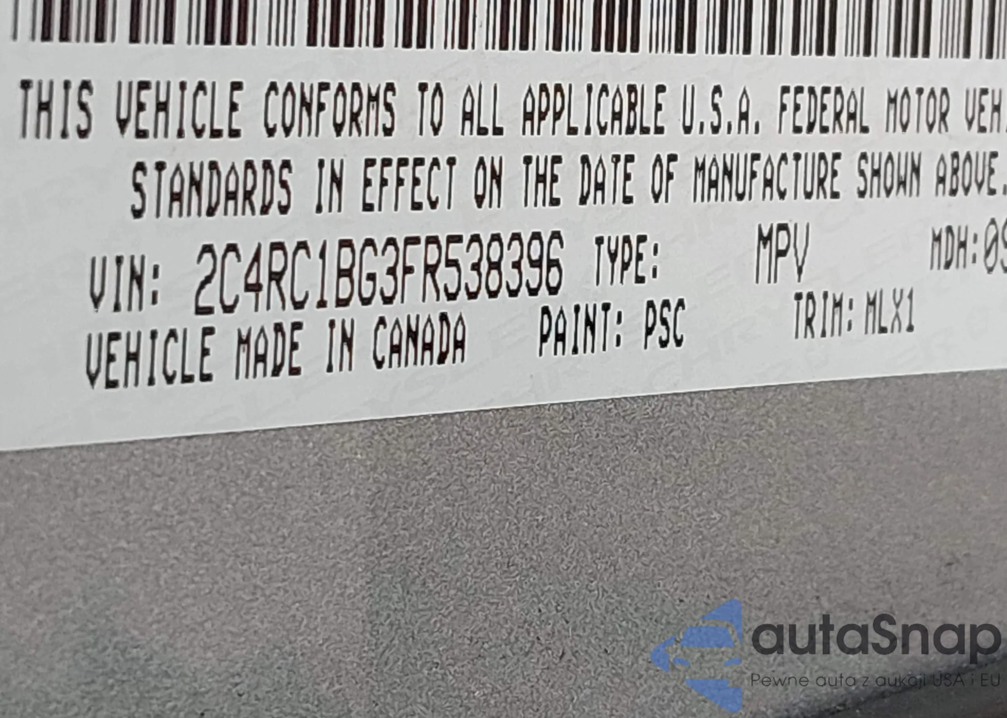 • VIN 2C4RC1BG3FR538396