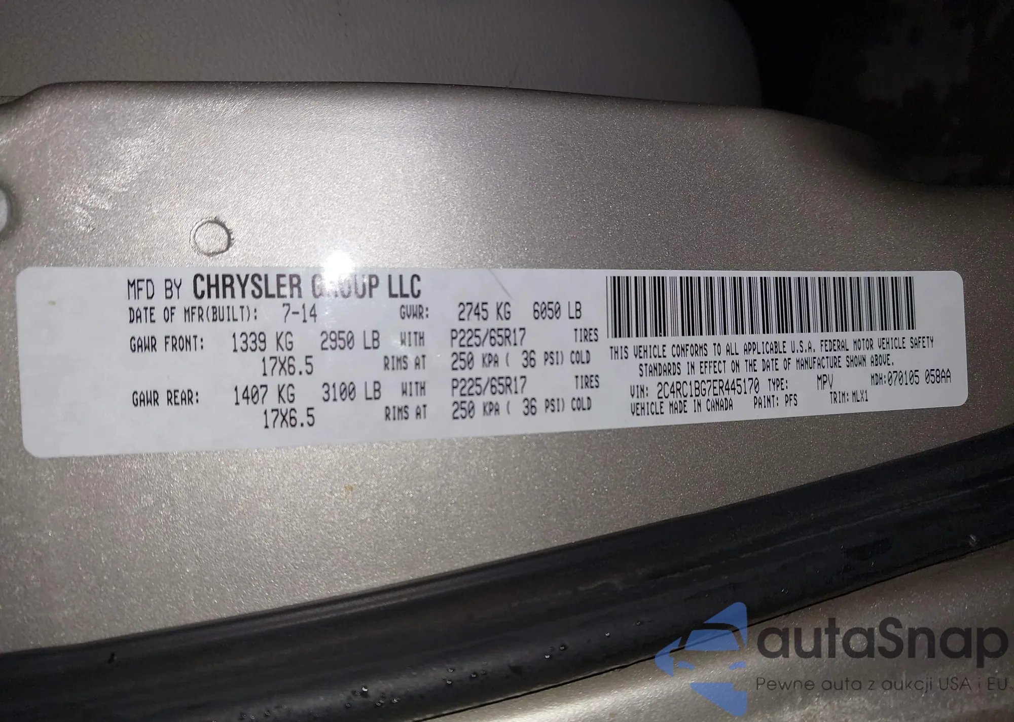 • VIN 2C4RC1BG7ER445170
