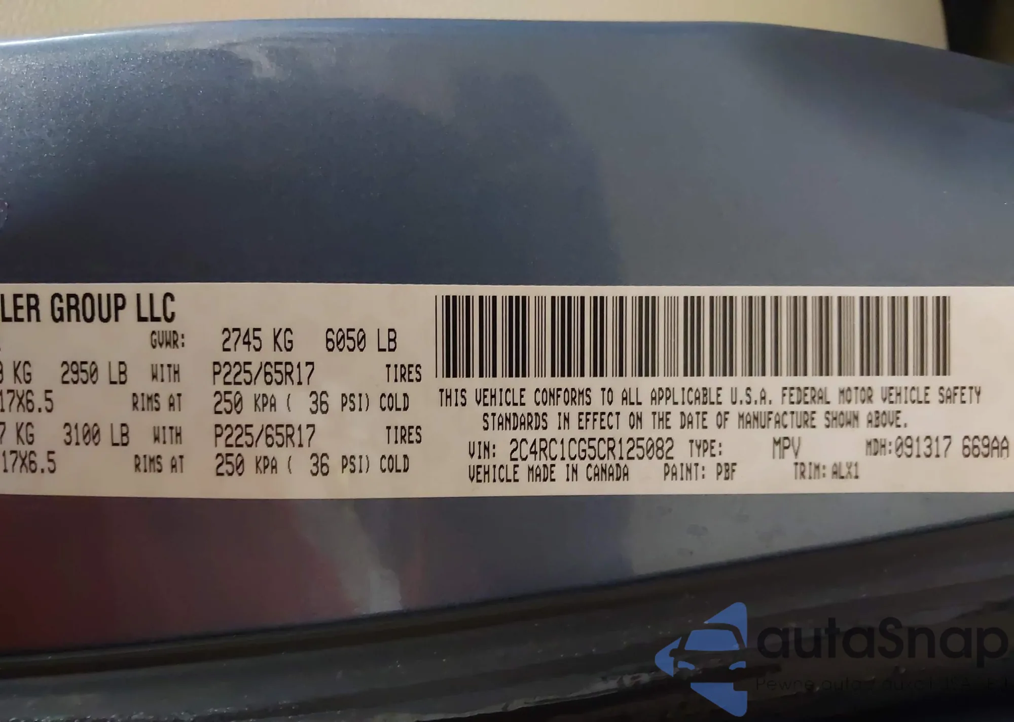 • VIN 2C4RC1CG5CR125082