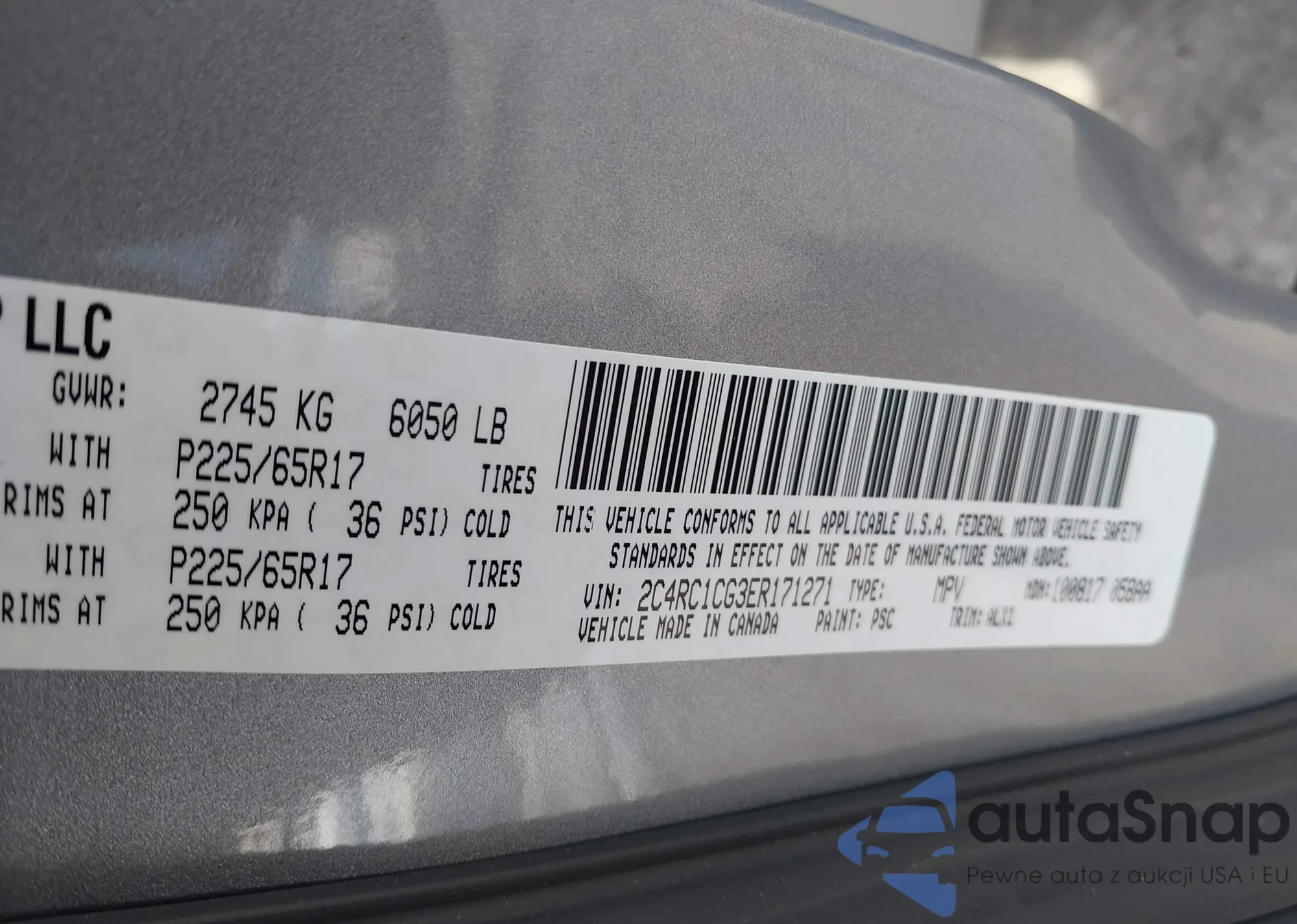 • VIN 2C4RC1CG3ER171271