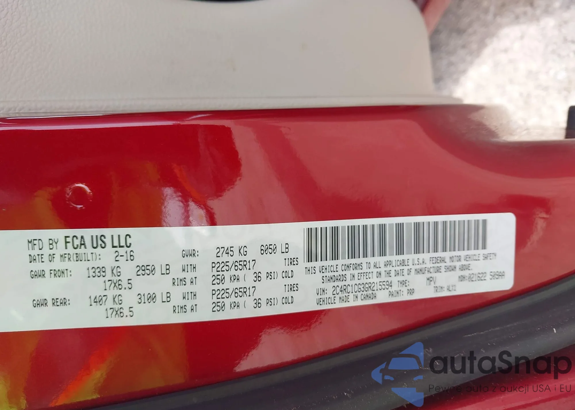 • VIN 2C4RC1CG3GR215594