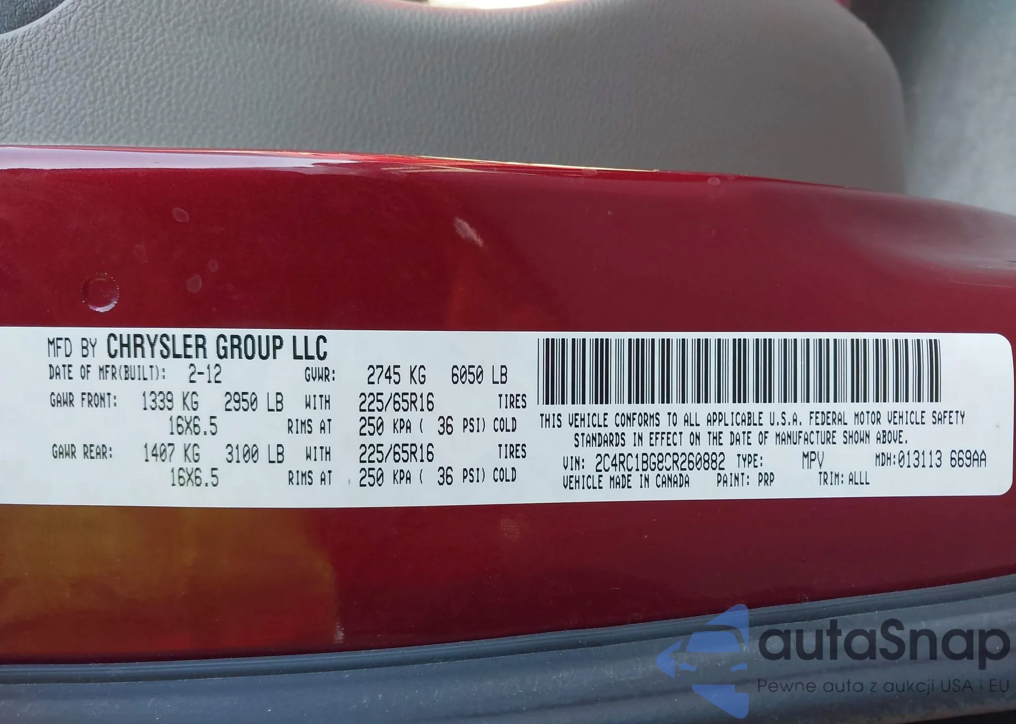 • VIN 2C4RC1BG8CR260882