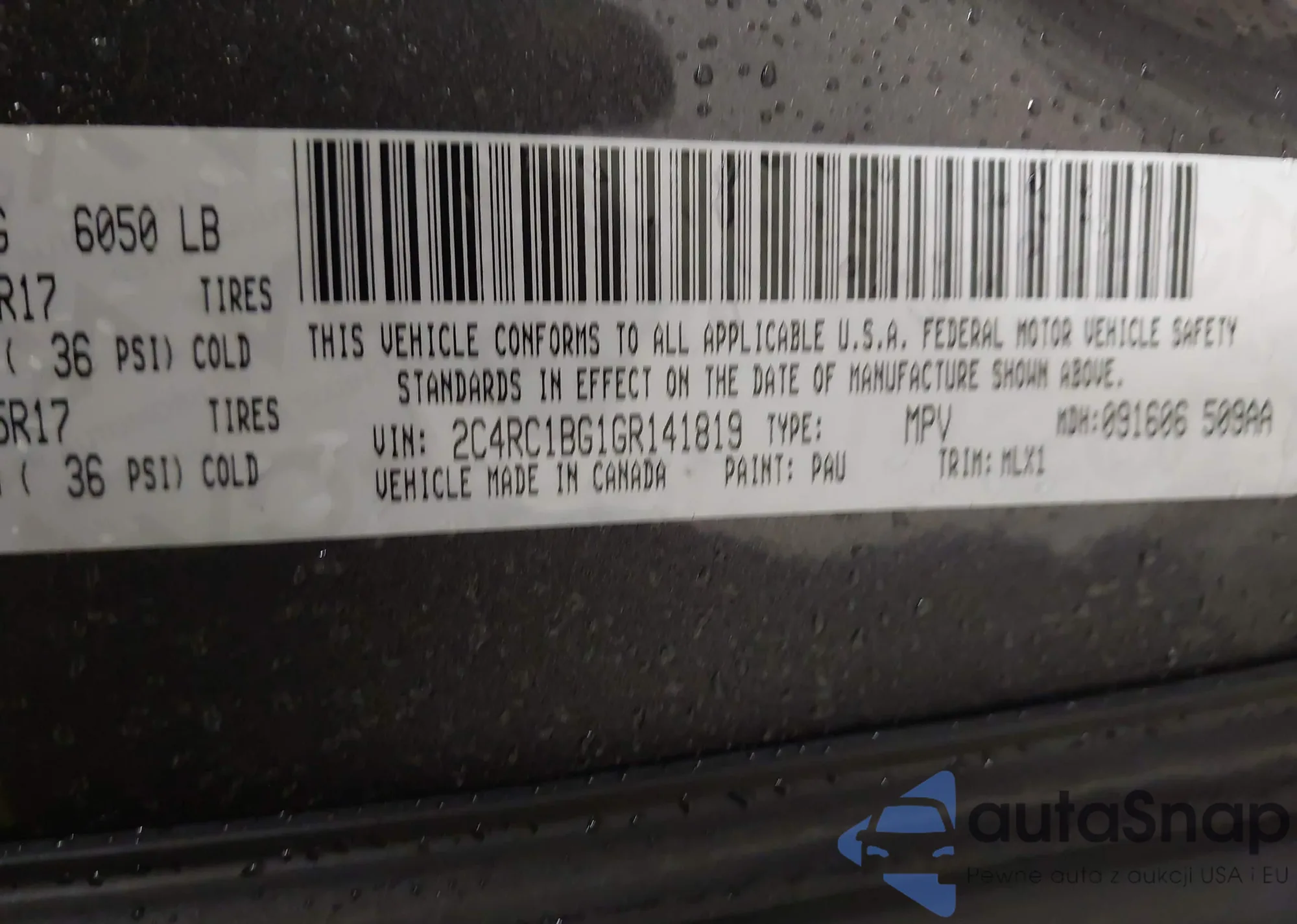 • VIN 2C4RC1BG1GR141819