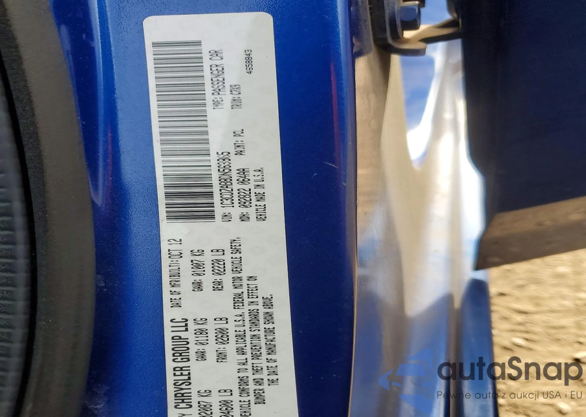 LOT: 73643885 VIN: 1C3CDZAB8DN563865