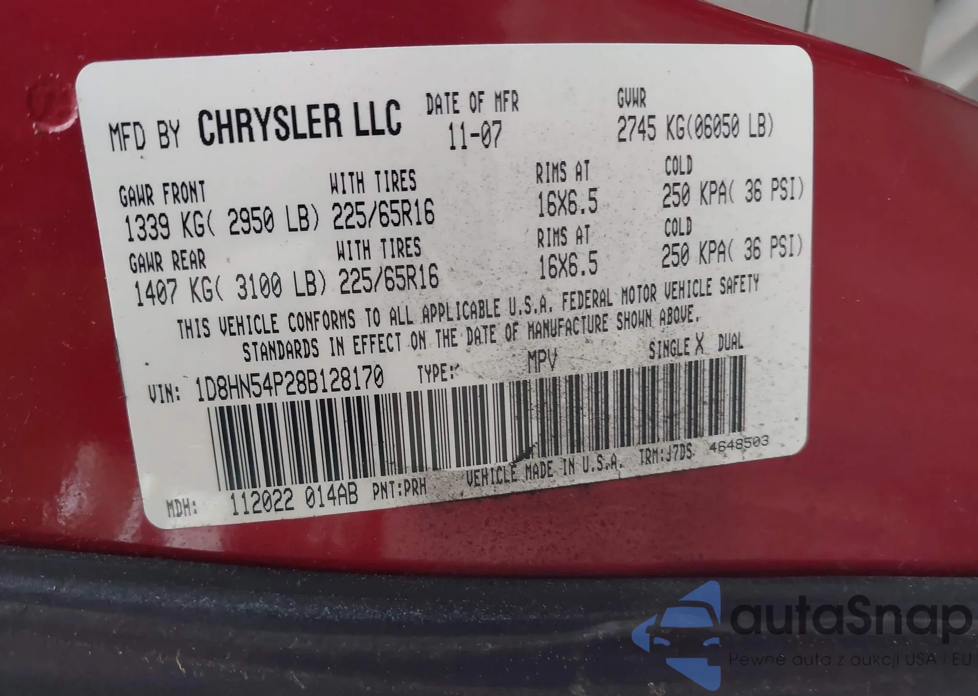 • VIN 1D8HN54P28B128170