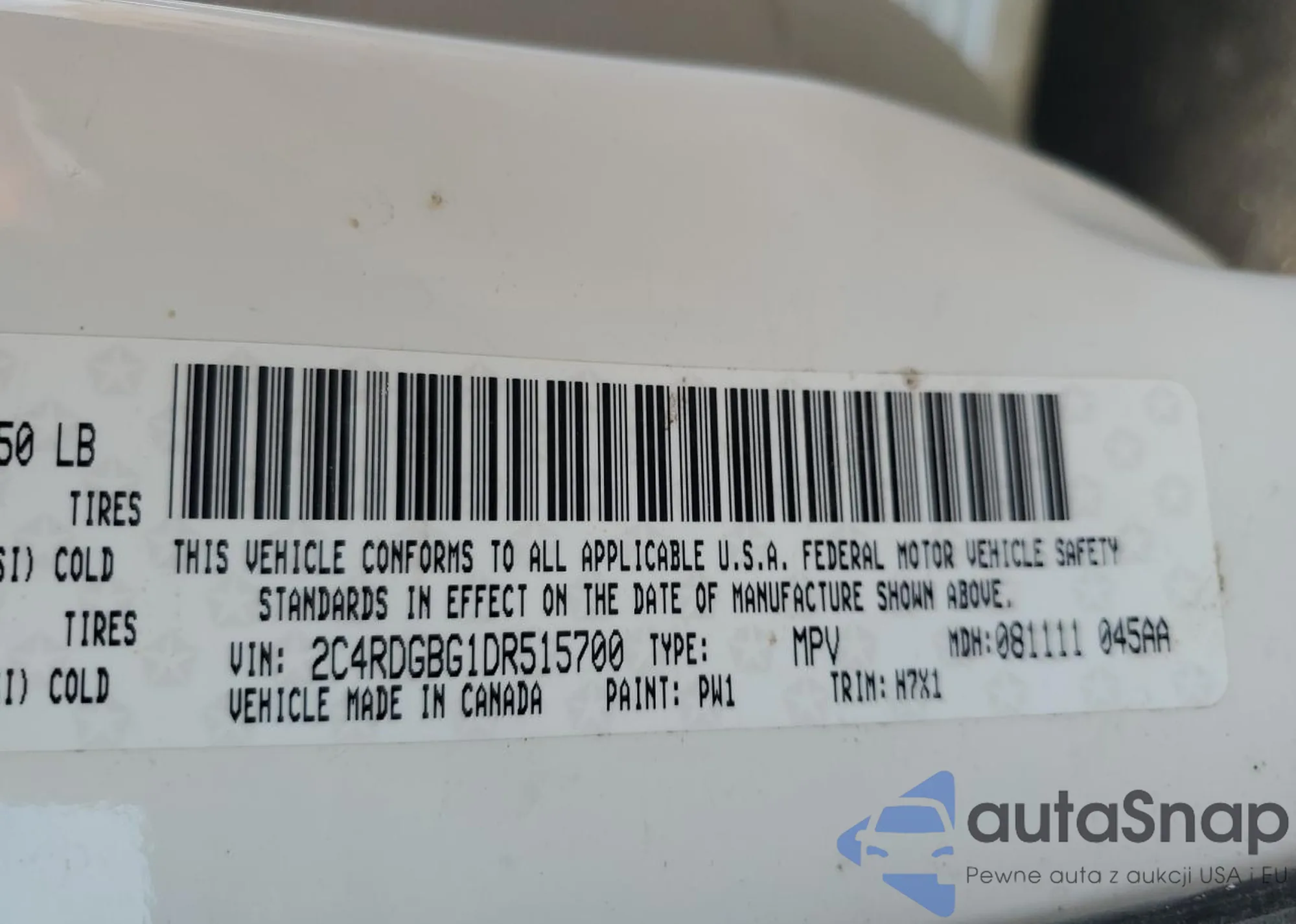 • VIN 2C4RDGBG1DR515700
