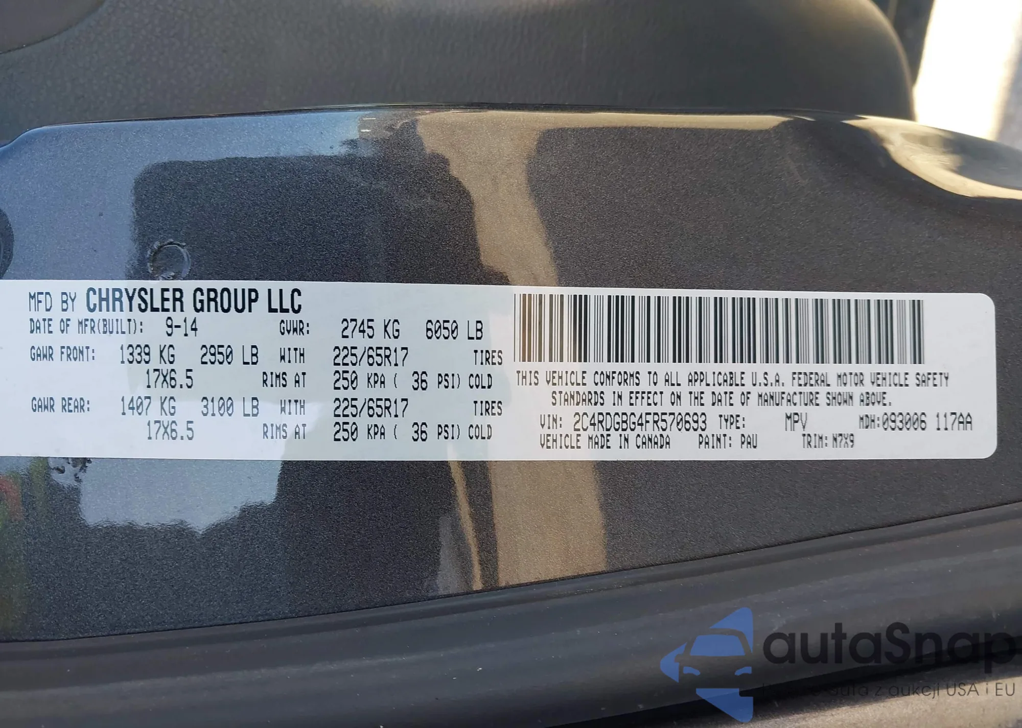 • VIN 2C4RDGBG4FR570693