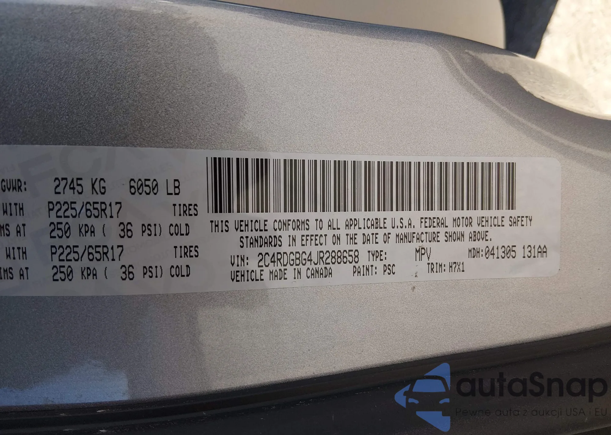 • VIN 2C4RDGBG4JR288658