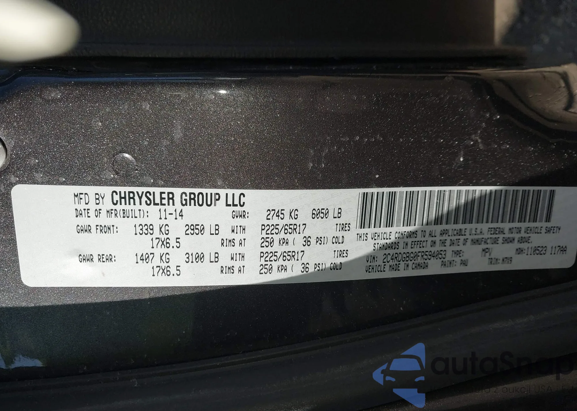 • VIN 2C4RDGBG0FR594053