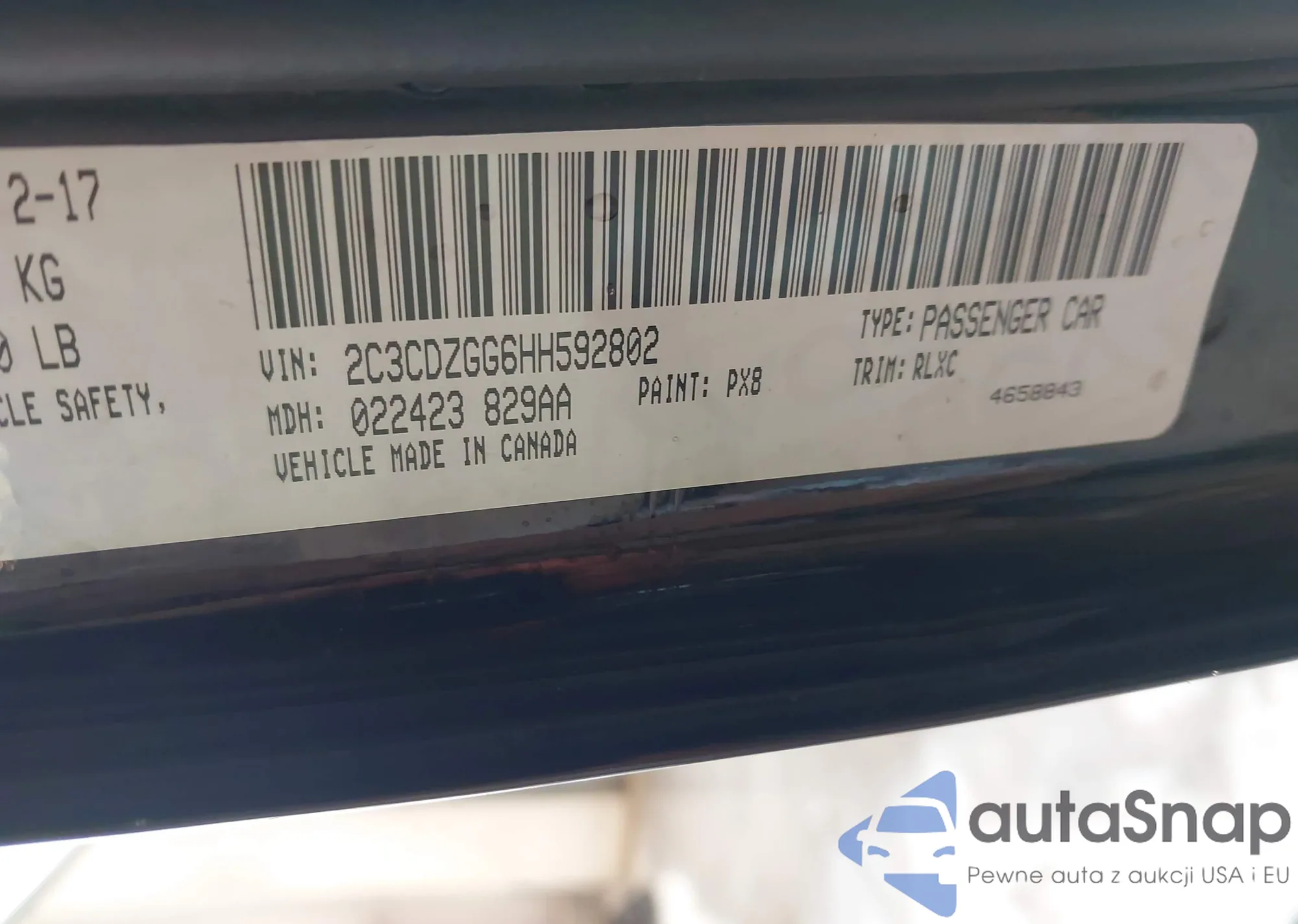 LOT: 43820398 VIN: 2C3CDZGG6HH592802