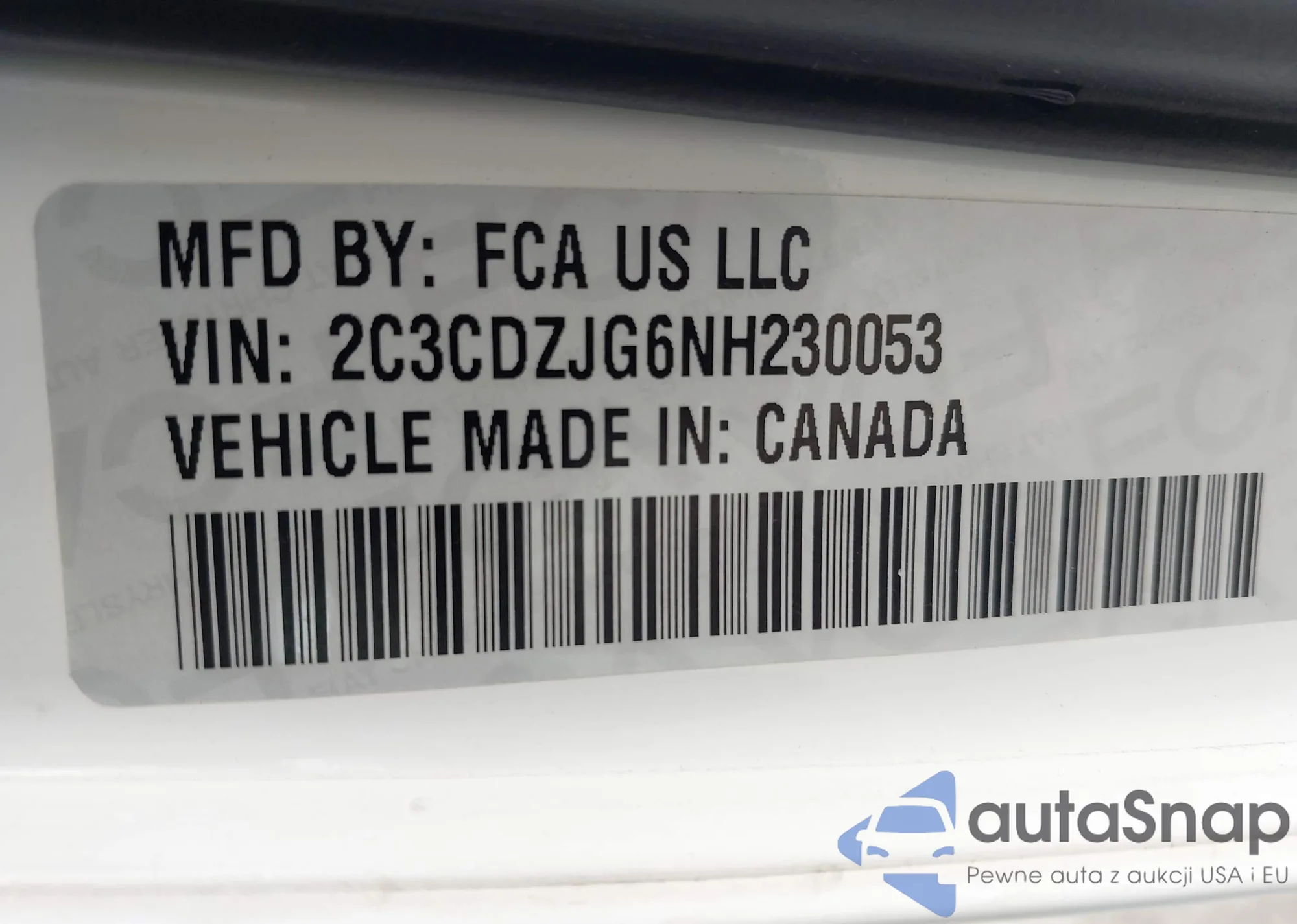 • VIN 2C3CDZJG6NH230053