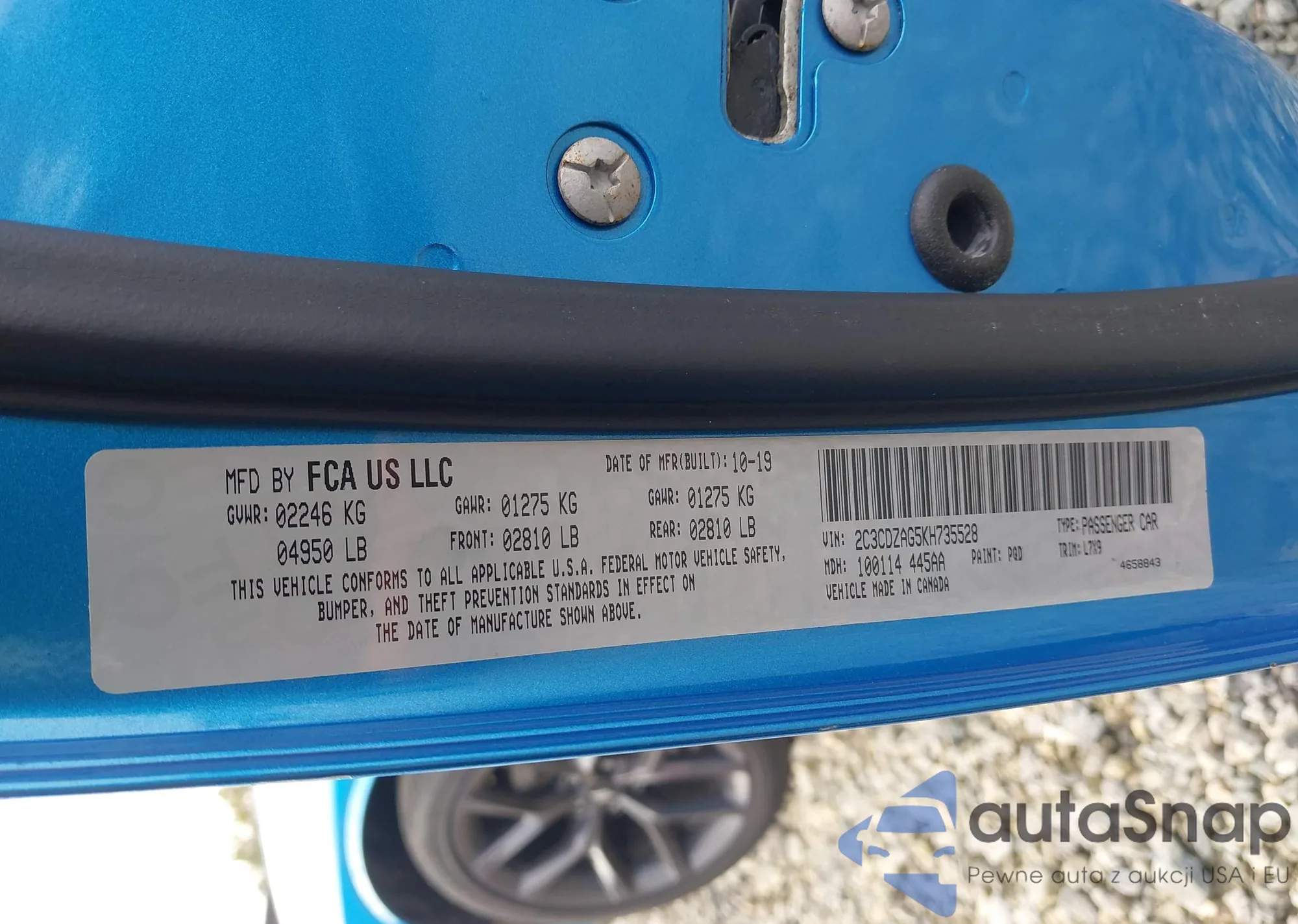 • VIN 2C3CDZAG5KH735528