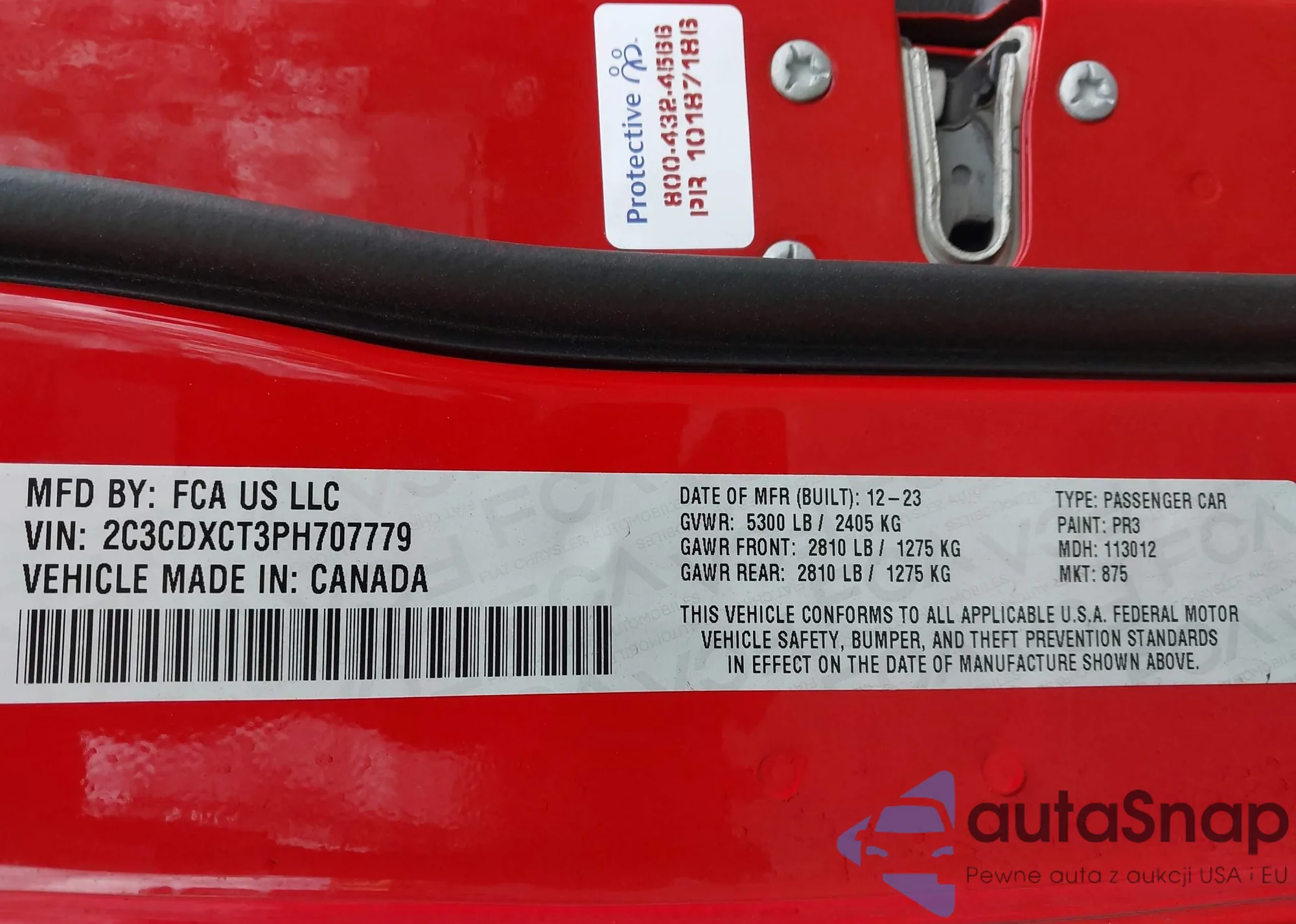 • VIN 2C3CDXCT3PH707779