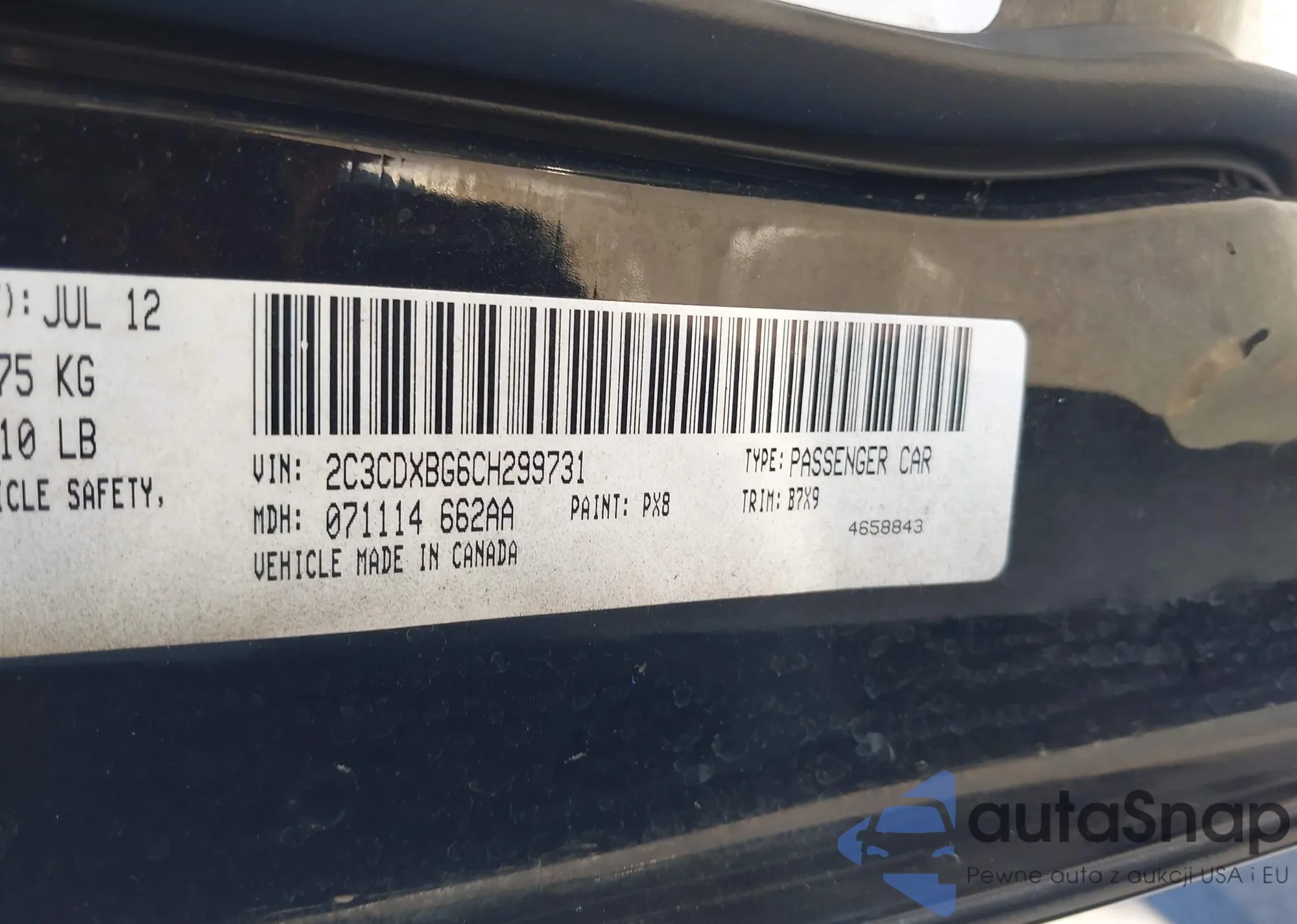 LOT: 43905005 VIN: 2C3CDXBG6CH299731