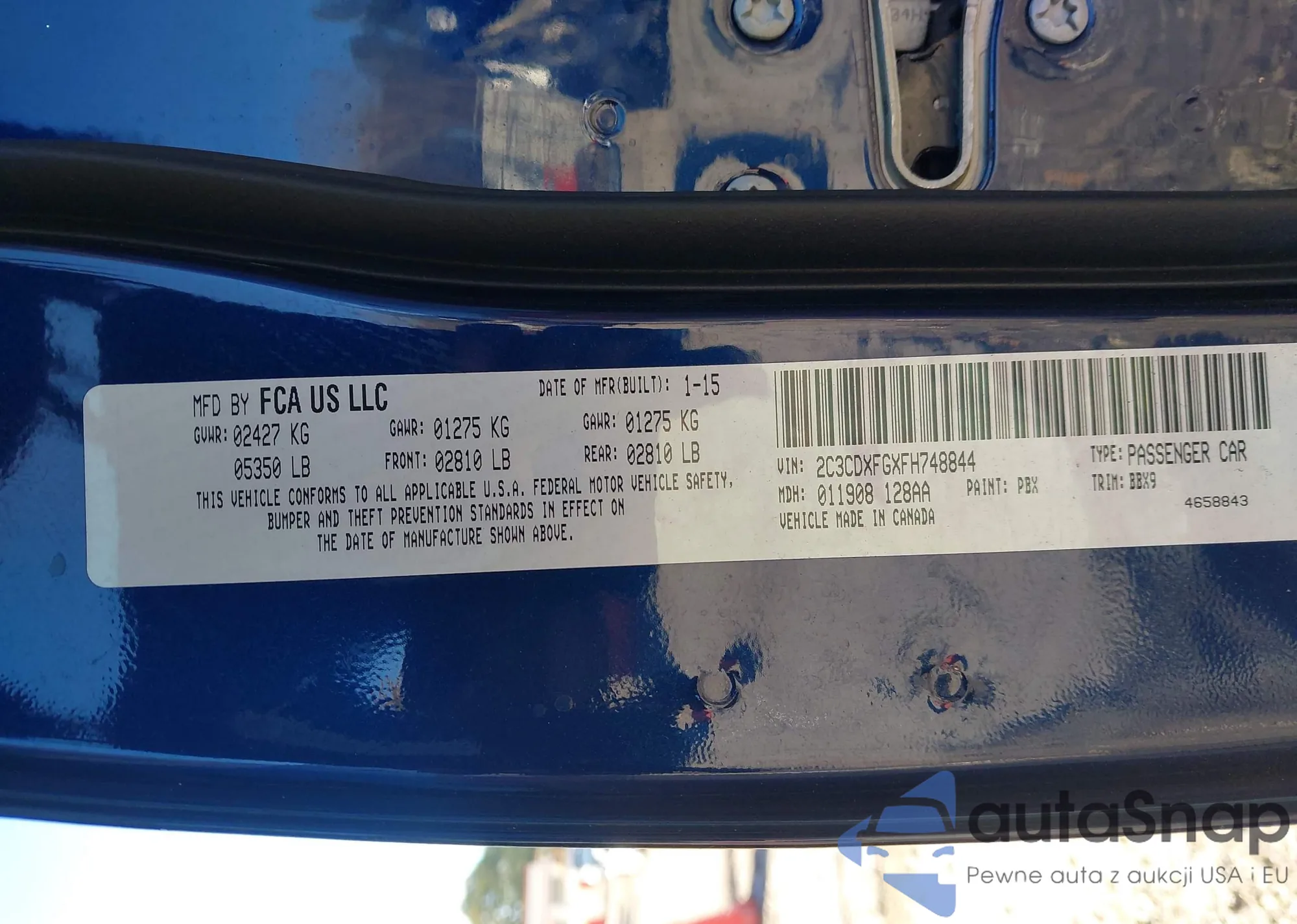 LOT: 43976785 VIN: 2C3CDXFGXFH748844