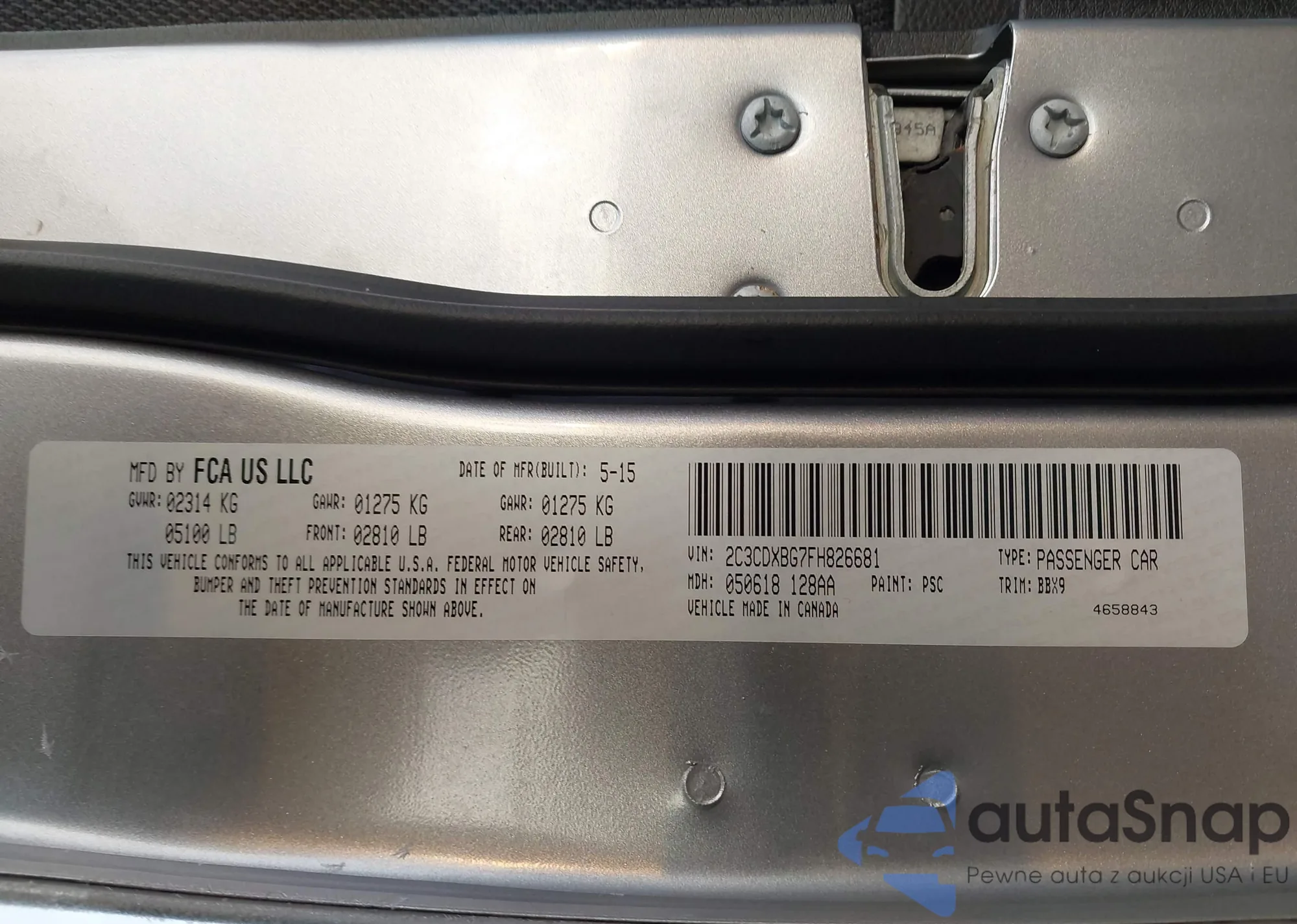 LOT: 43974258 VIN: 2C3CDXBG7FH826681
