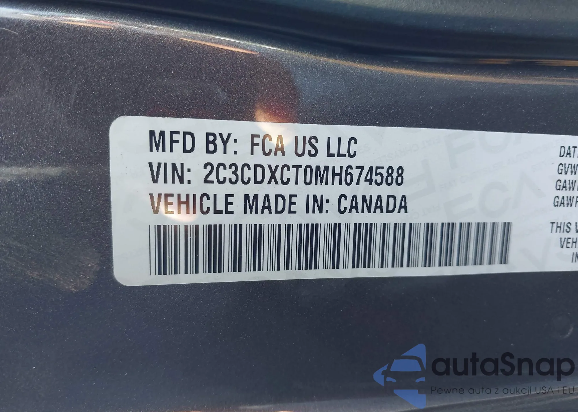 • VIN 2C3CDXCT0MH674588