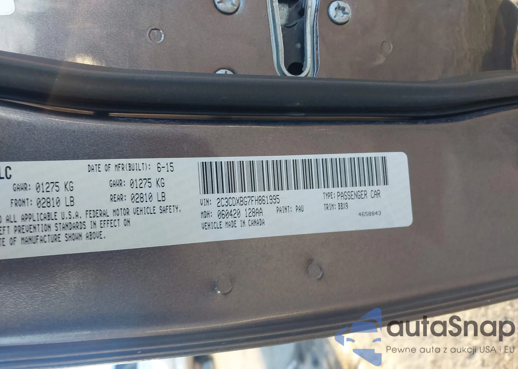 LOT: 43707289 VIN: 2C3CDXBG7FH861995