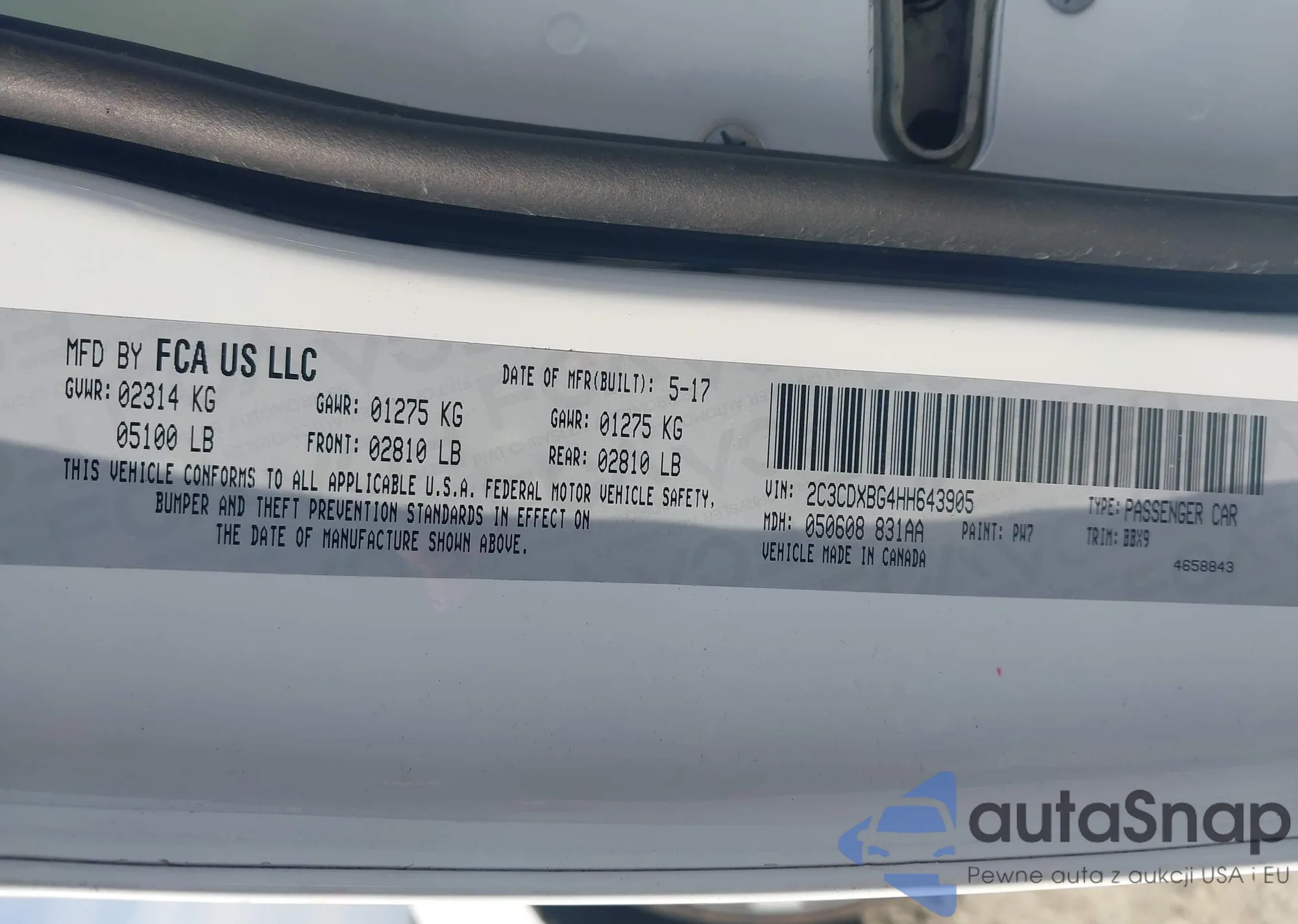 • VIN 2C3CDXBG4HH643905