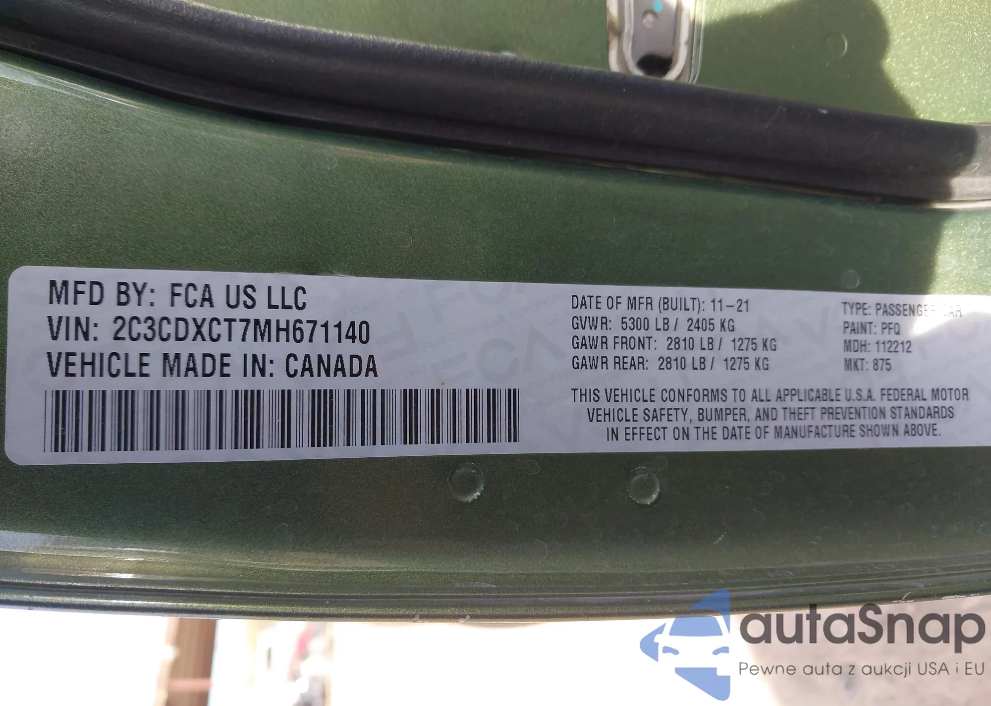 • VIN 2C3CDXCT7MH671140