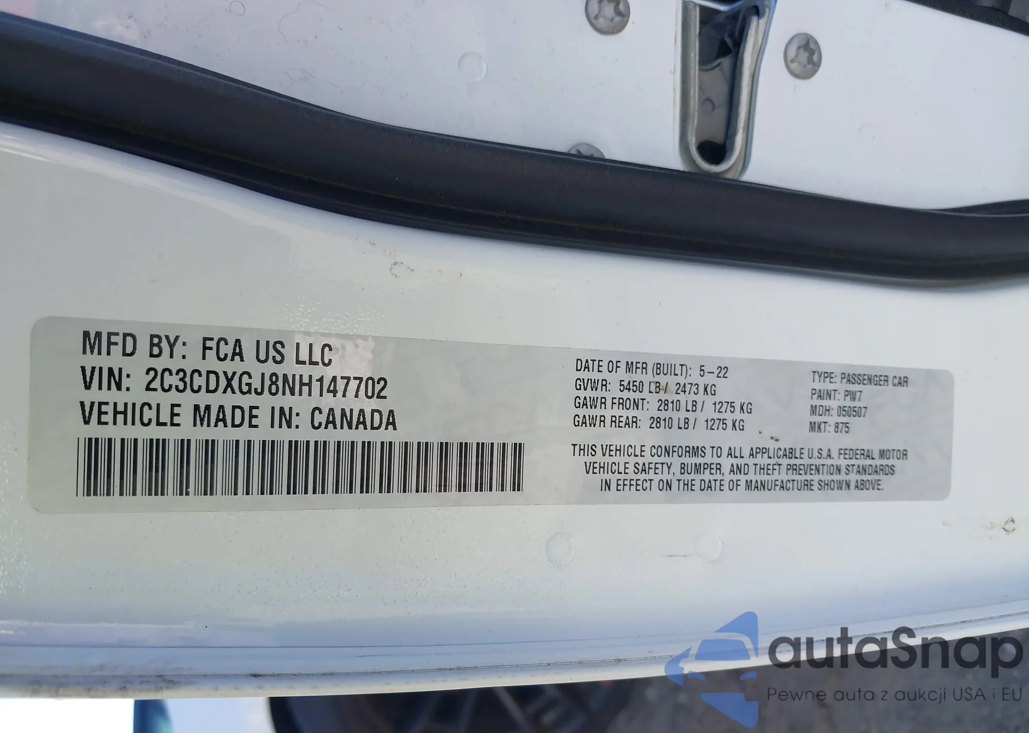 • VIN 2C3CDXGJ8NH147702