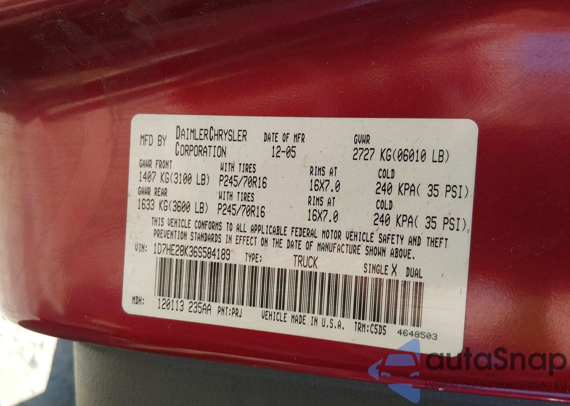 • VIN 1D7HE28K36S584189