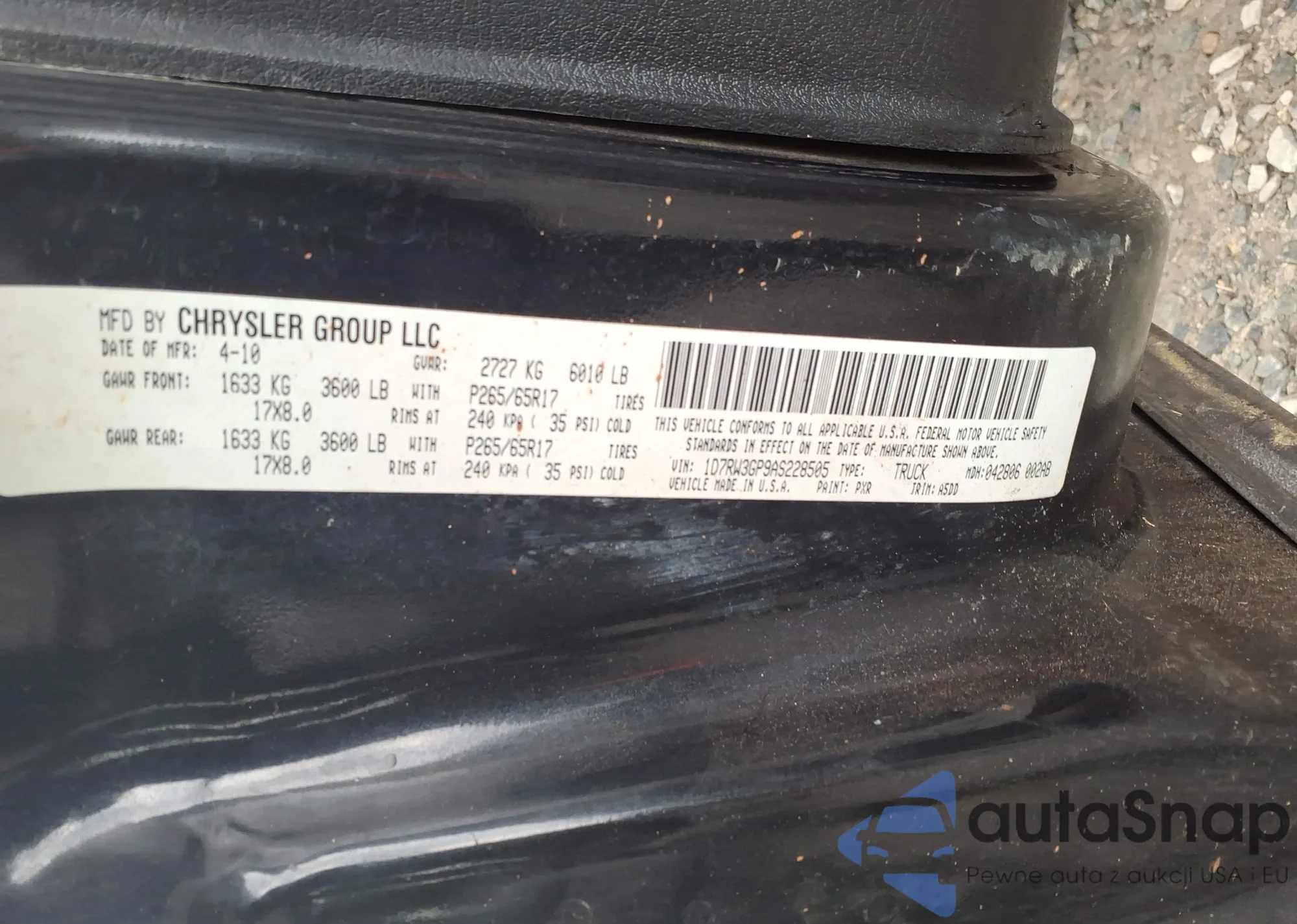 • VIN 1D7RW3GP9AS228505