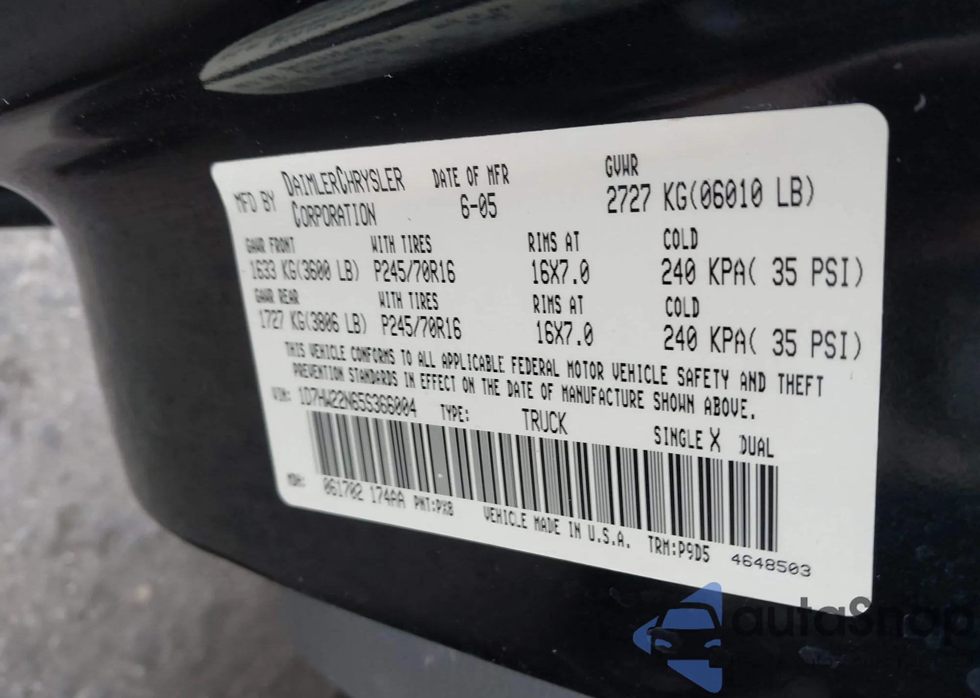 • VIN 1D7HW22N65S366004